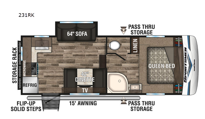 With every KZ Sportsmen model you will appreciate the ability to travel during any season thanks to the Climate Package which includes an insulated, heated and enclosed underbelly. Inside, the chef will enjoy the seamless countertops with an undermount kitchen sink and sink covers as well as the stainless steel residential kitchen faucet with pull-down sprayer. You will find storage throughout, even in the dinette doors with 36" pullout storage bins. Each unit also features an outside shower, a power awning with LED light strip, and durable Armstrong Tough Guard vinyl flooring which is stain, tear and moisture resistant. It's time to make memories for a lifetime with the perfect model to fit your family's active or relaxing lifestyle.