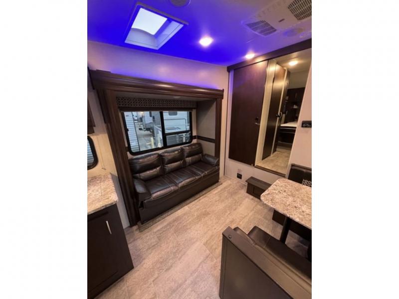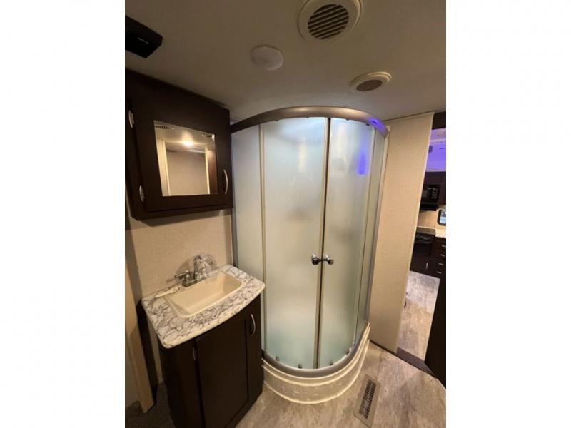 Just imagine hiking and biking around your favorite campground then returning to your own accommodations to relax and unwind. The cook can prepare meals in the rear kitchen while you relax on the sofa within the slide out. You both can retire to the master bedroom after getting cleaned up in the walk-through bathroom which is an extension of the bedroom. Having the sink separate from the private toilet allows for more than one person to be getting ready at the same time. Choose this Sportsmen fifth wheel, and you will be happy you did!