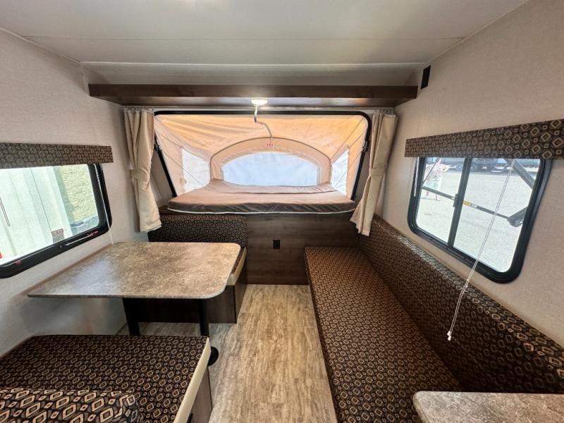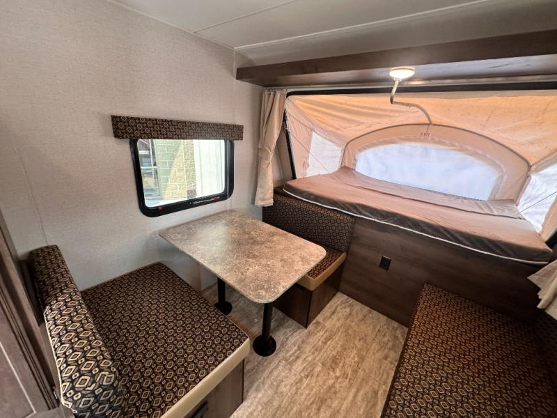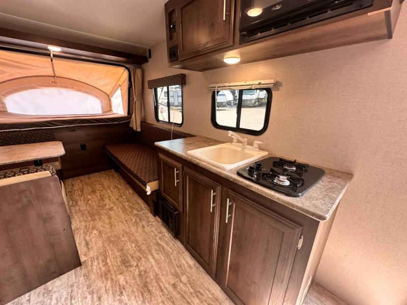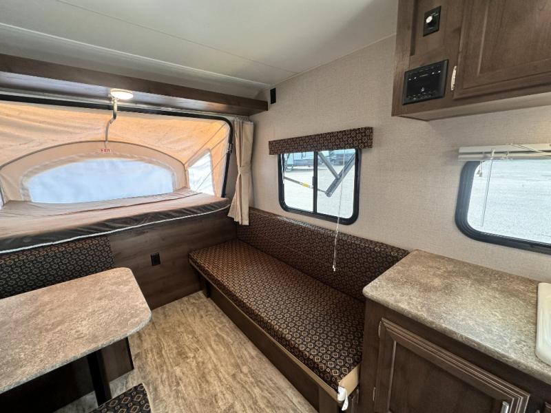 Do you have a medium family that loves camping? If so, this KZ Sportsmen Classic 160RBT is just what you need! This expandable is equipped with two tent beds that provide comfortable sleeping areas. The booth dinette can also be turned into an extra sleeping area for those unexpected guests. The LED lighting allows you to have clear visibility during the day and night. One of the handy features in this unit is the trunk door, where you can easily access and store all of your camping needs!