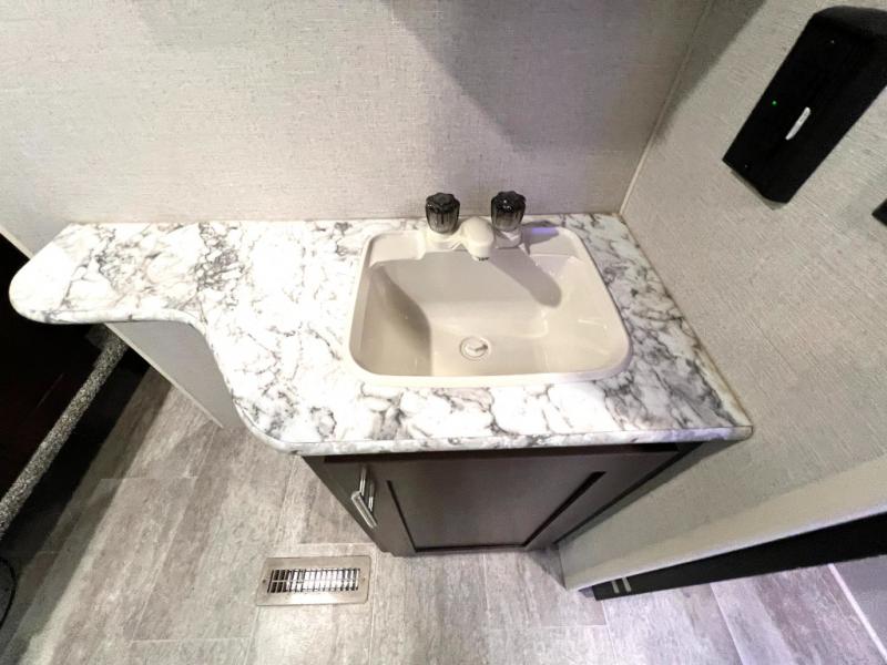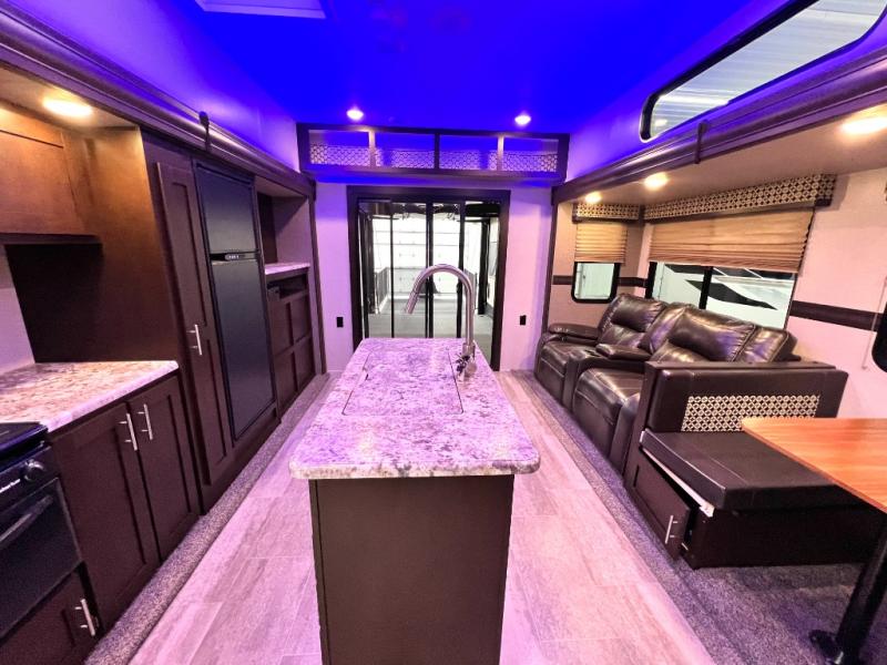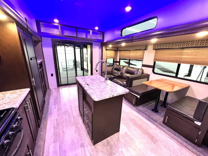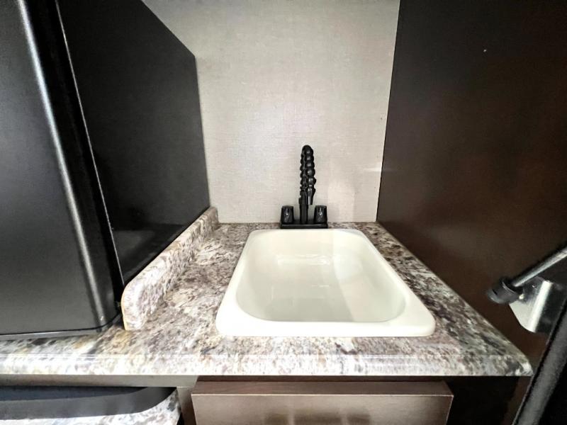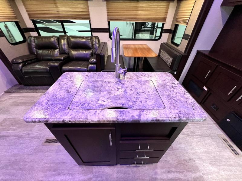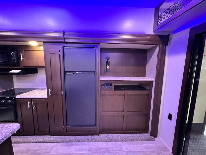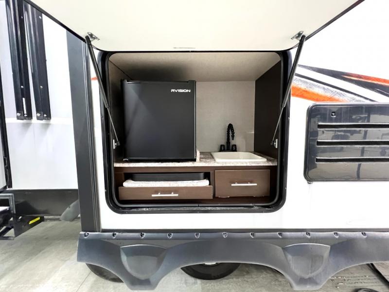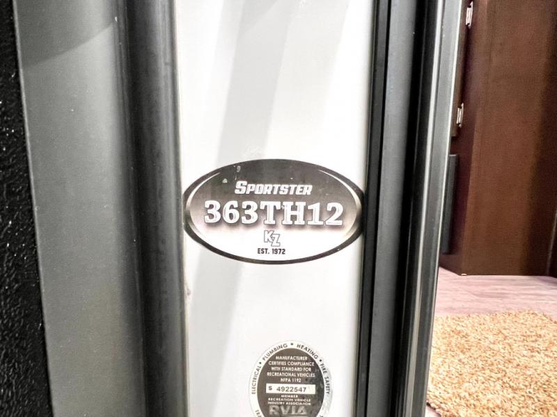 If you want a toy hauler that has it all and then some, then choose this KZ Sportster 363TH12 fifth wheel! Your meal prep will be a breeze in the kitchen with the kitchen islands extra storage and counter space. You will enjoy having a smooth flow of traffic in and out with the double entry doors. The front private bedroom helps give you a peaceful night's rest on a queen-size pillowtop mattress and you can easily access the bathroom without waking others with the double entry. You can easily store and access your camping needs inside of the exterior pass-through storage area. You can also even choose to have the optional 30" fireplace or additional 9' power awning for even more luxuries!