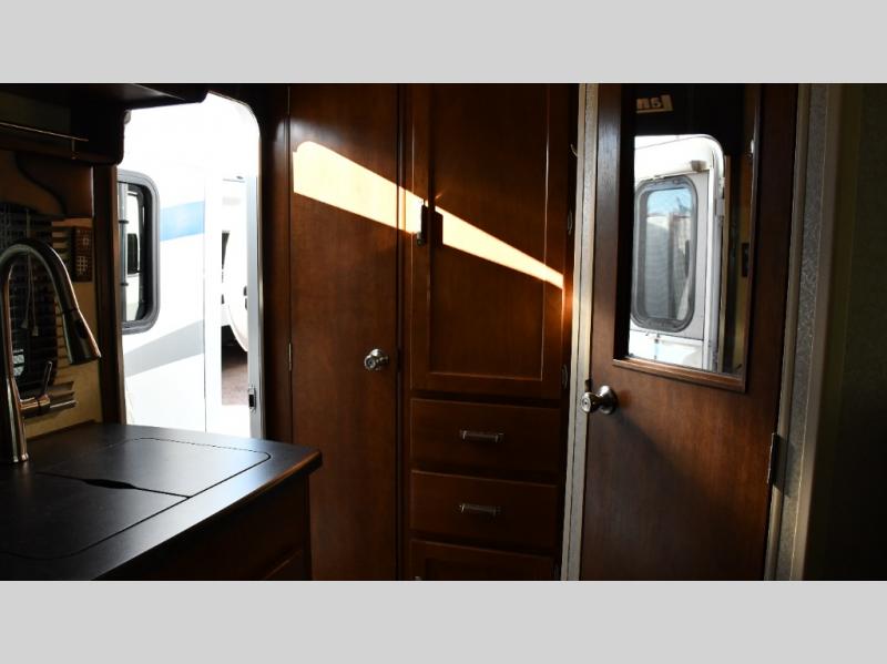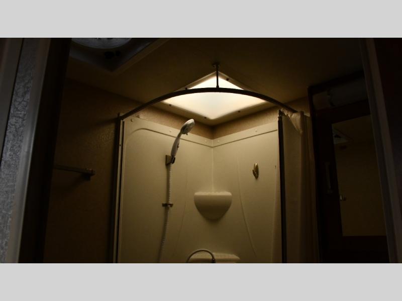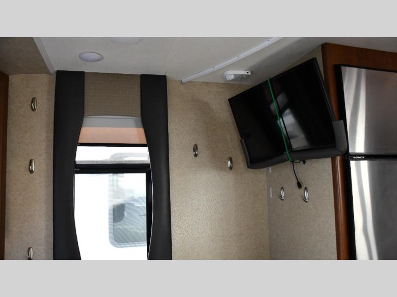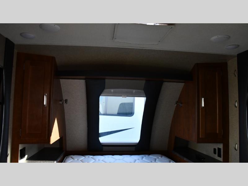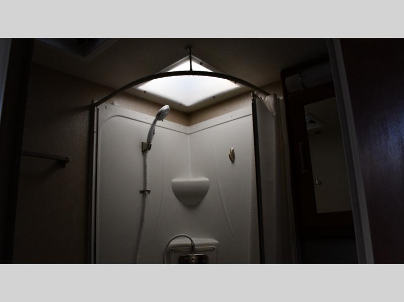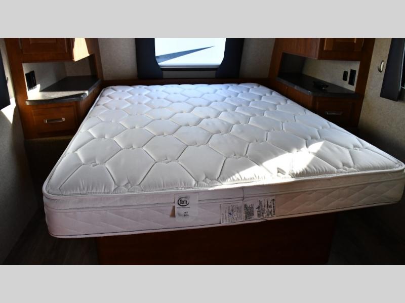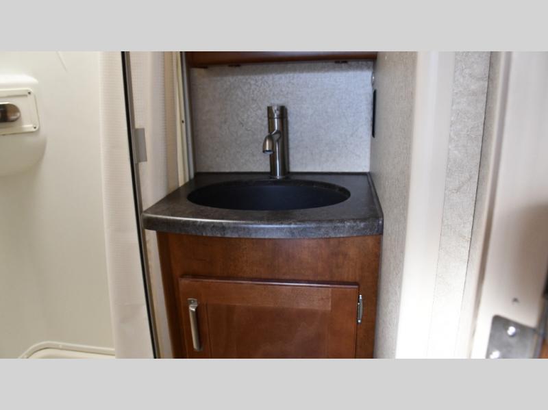 Step inside to find a thoughtfully laid-out interior that feels bright, airy, and functional. The walk-around queen bed provides comfort and flexibility, while the U-shaped dinette is perfect for family meals, board games, or even extra sleeping space for guests. The three-burner range allows you to prepare your favorite meals on the road, and the included bathroom mirror adds convenience to your morning routine.