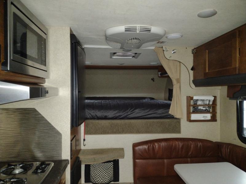 Traveling has never been easier than in this Lance truck camper, so it's no wonder that this model is one of the most popular choices. The floor plan of this camper has been thoughtfully designed in order to maximize the use of space, like the addition of the multi-functional U-shaped dinette that gives you an area to gather together for dinner and later to sleep at night. All of your needs will be met in this truck camper because of the spacious wet bath and fully-equipped kitchen that even has a silverware organizer and mini blinds above the galley, dinette, and the cab-over.