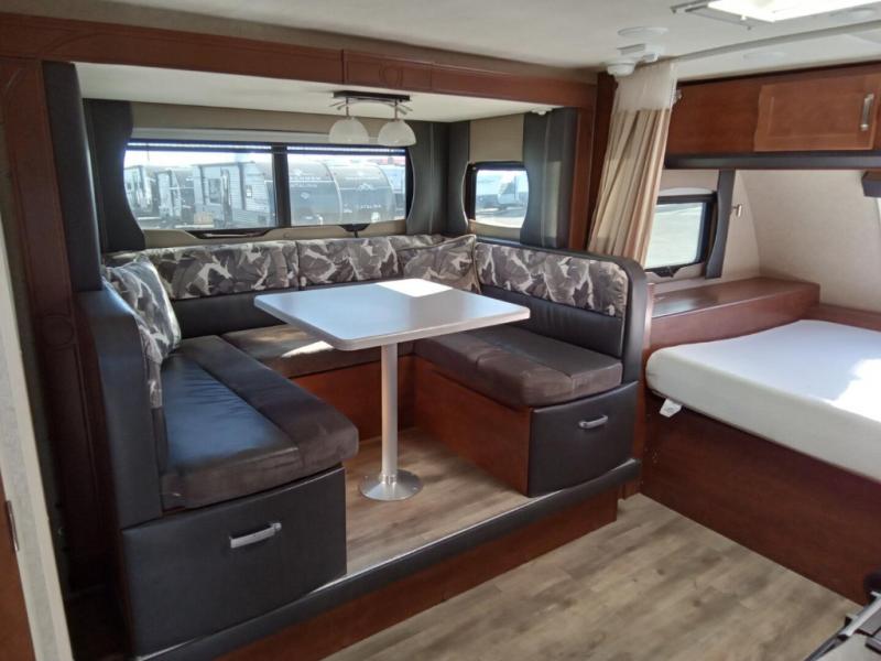 If you enjoy owning a trailer that you can trust to provide quality and style, then this Lance Camper travel trailer is the perfect match for you. Every available inch in this unit has been utilized for storage space with additions like the overhead cabinet bunk, and wardrobe. The bathroom area has been updated to meet all of your needs with the inclusion of the skylight that allows the sun to stream through and the mirrored bath door which gives you the opportunity to dress confidently for each day's adventures. Because this unit has a U-shaped dinette within the single slide, you can sleep four people during any of your upcoming travels.