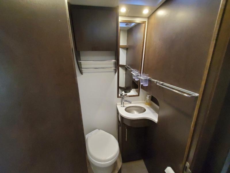 For the ultimate getaway experience, you need this Unity Class B+ diesel motorhome! The unique and versatile features in this coach, like the two twin-size beds that can convert into one king-size bed, are what make it extremely valuable. Even the bathroom area is multi-functional because of its separate lavatory and enclosed shower with a skylight above, and the adjustable front seating area is handy for dining, sleeping, or playing a card game with the family.