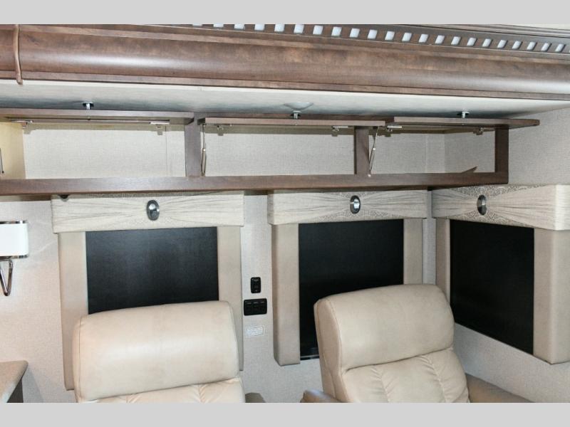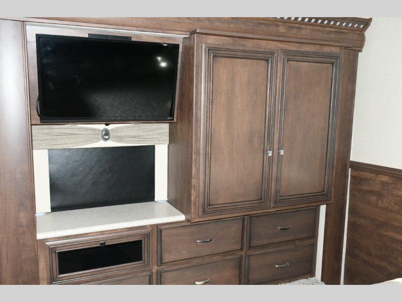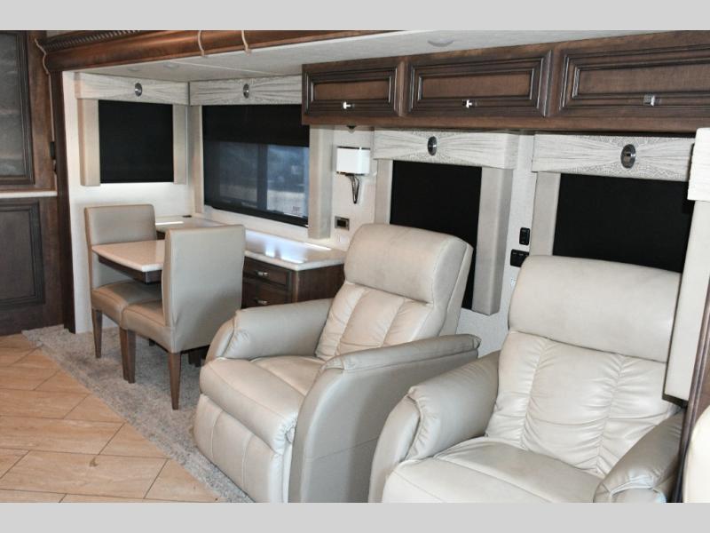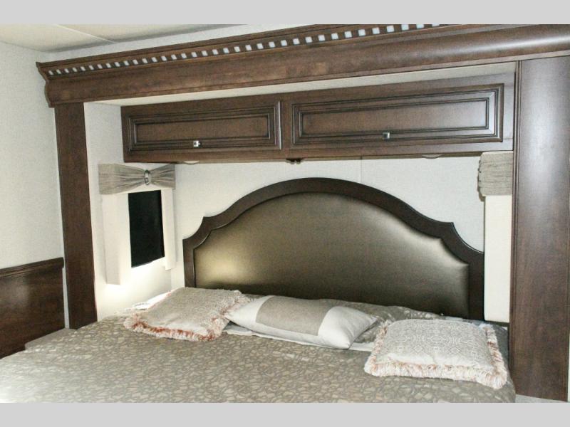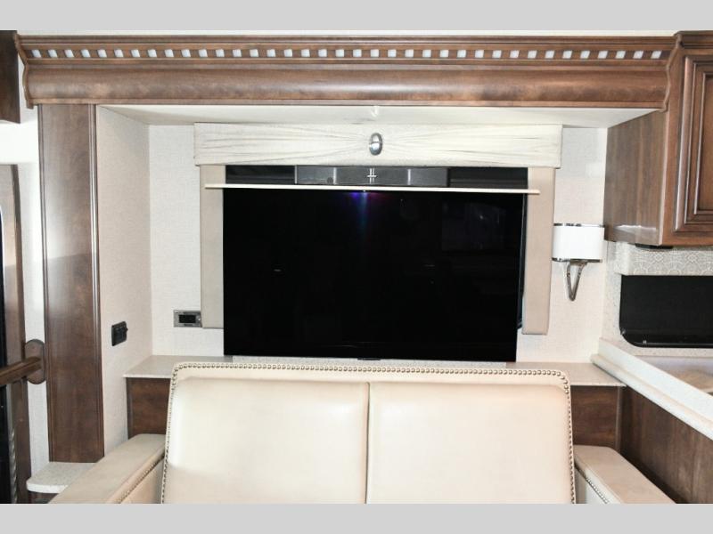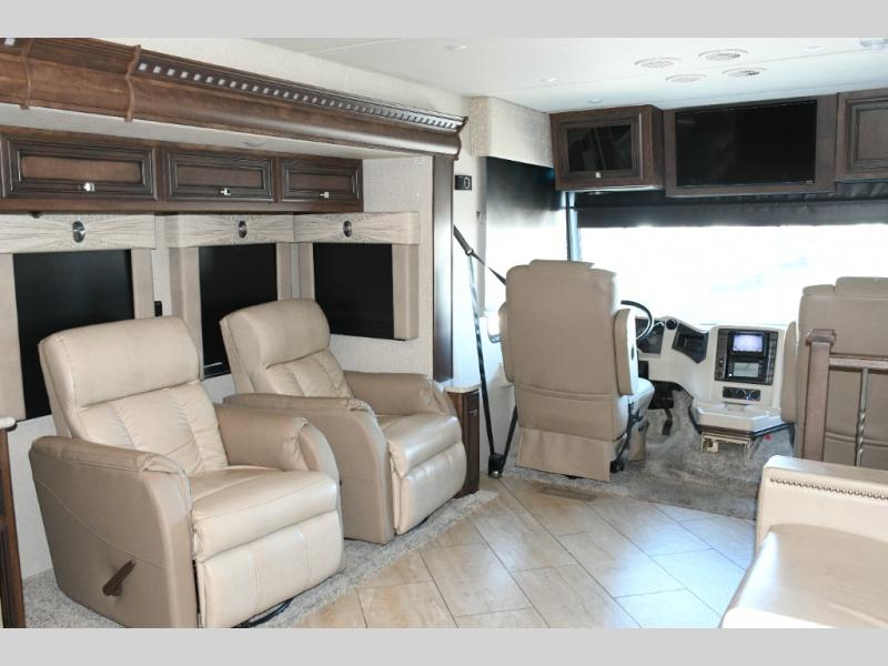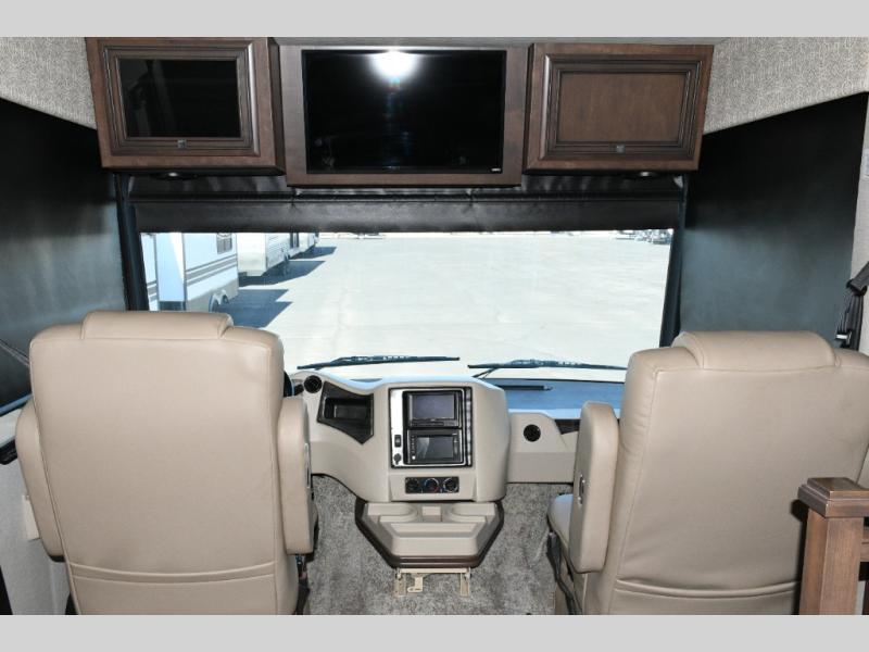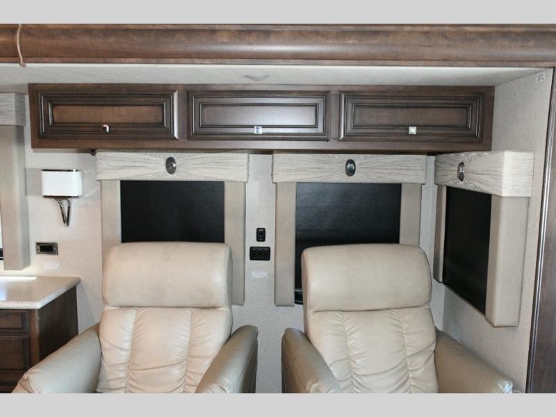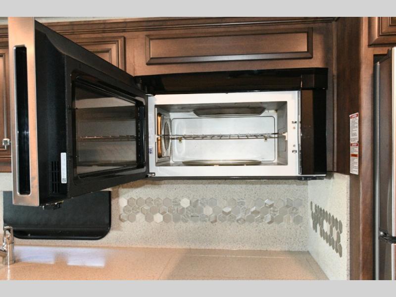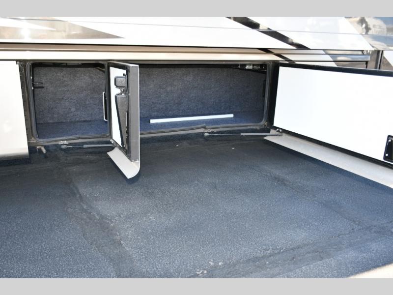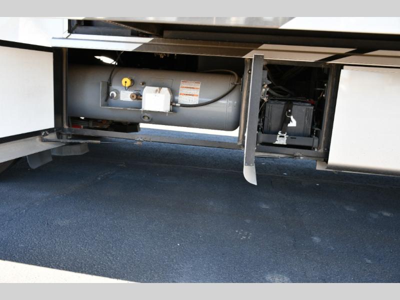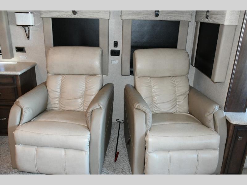 The exterior Masterpiece full-painted graphics with clearcoat finish make a bold statement at every campground, while the DuraShield front cap protection helps preserve that like-new appearance. Inside, Flexsteel deluxe leather seating and high-end finishes elevate every mile, whether you’re cruising cross-country or settling in for a seasonal stay.
