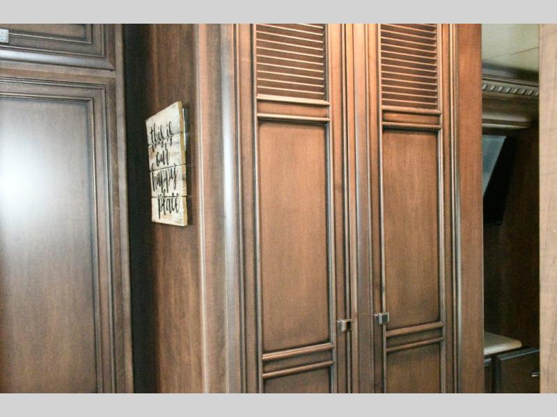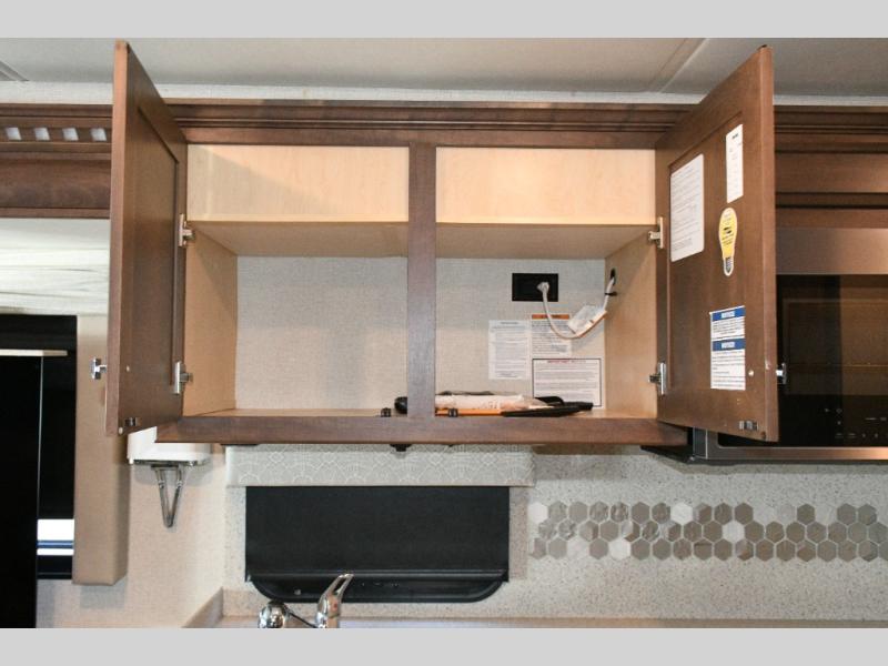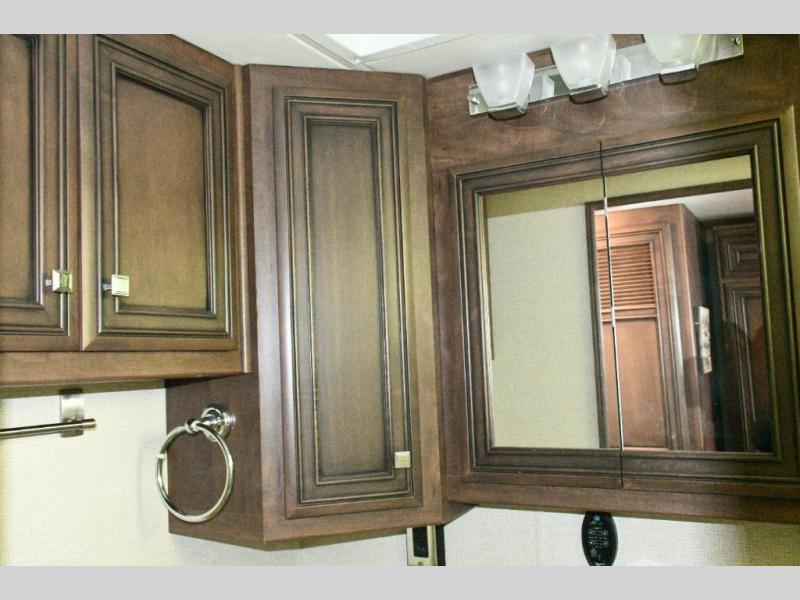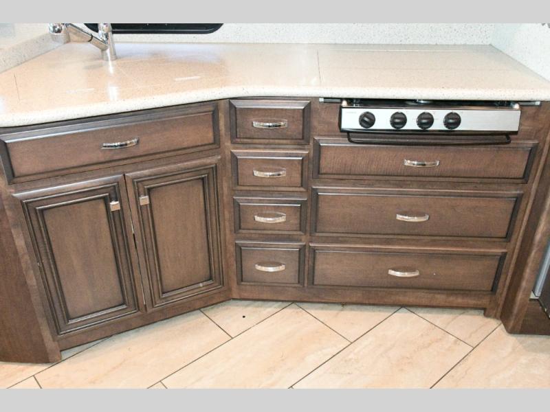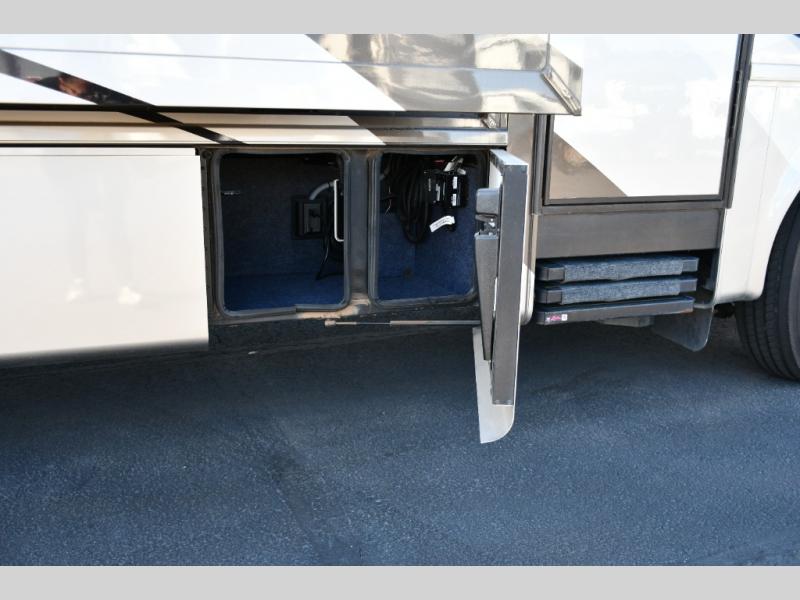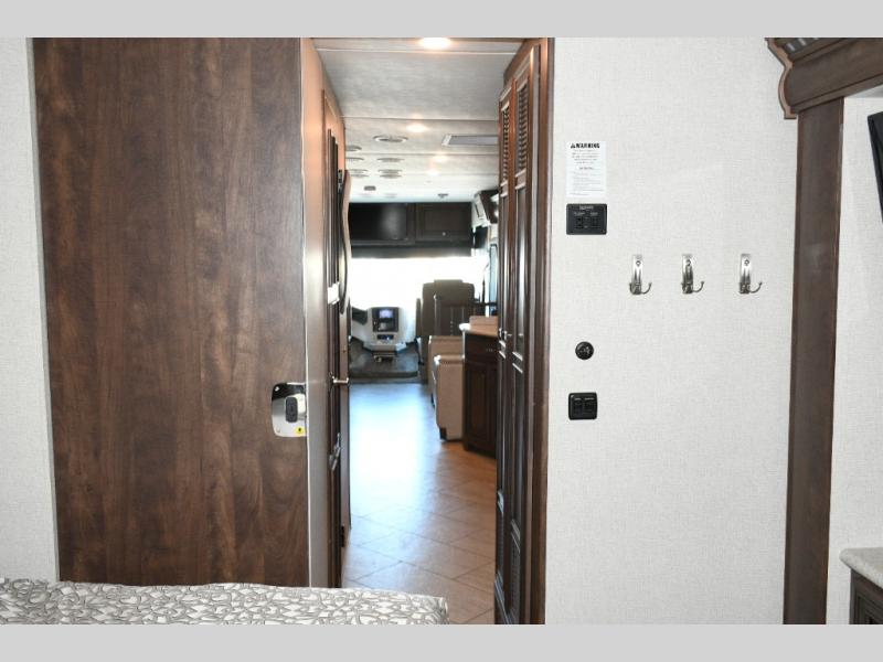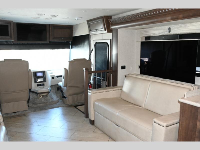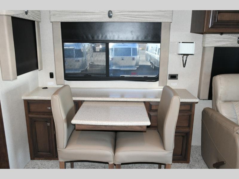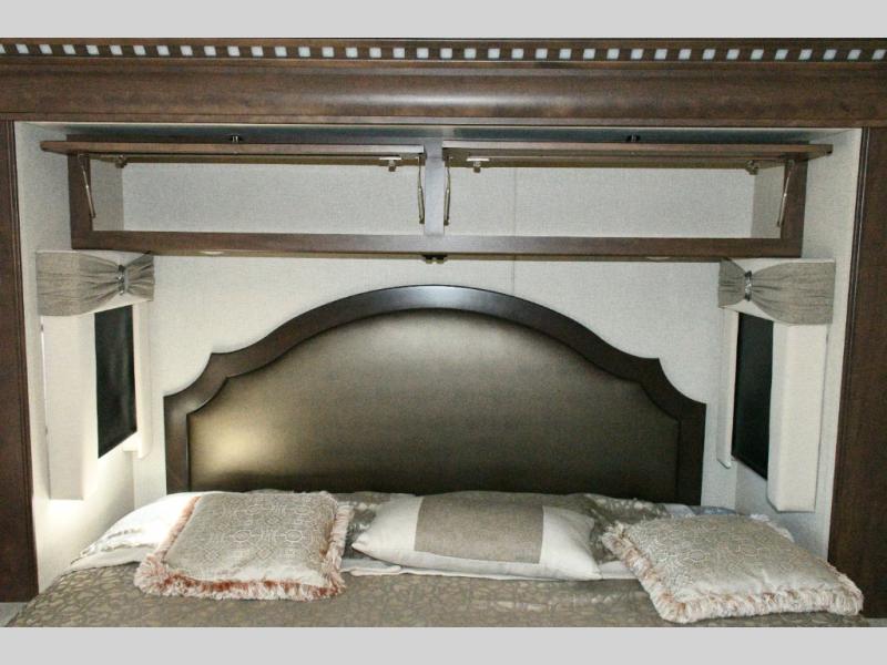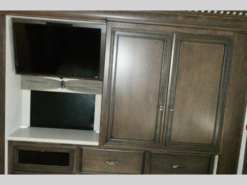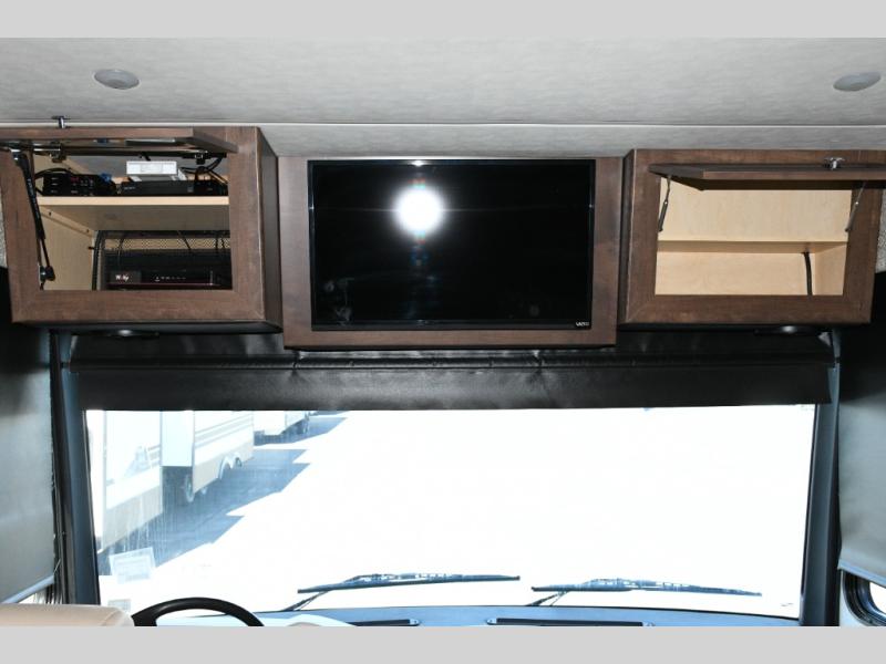 The exterior Masterpiece full-painted graphics with clearcoat finish make a bold statement at every campground, while the DuraShield front cap protection helps preserve that like-new appearance. Inside, Flexsteel deluxe leather seating and high-end finishes elevate every mile, whether you’re cruising cross-country or settling in for a seasonal stay.