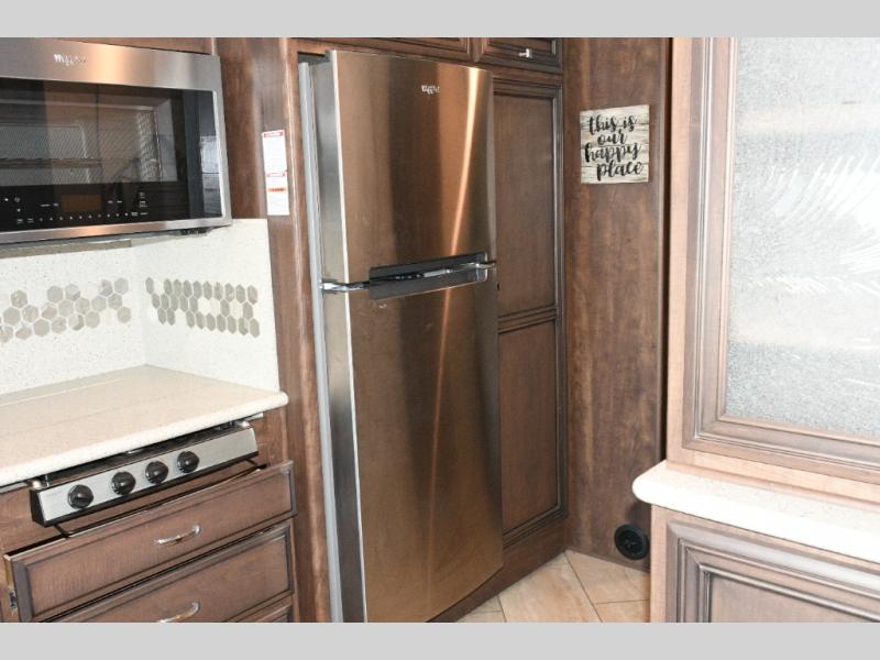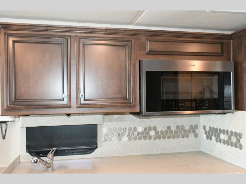Well-equipped kitchen with 10 cu. ft. Norcold refrigerator and 30" over-the-range microwave.