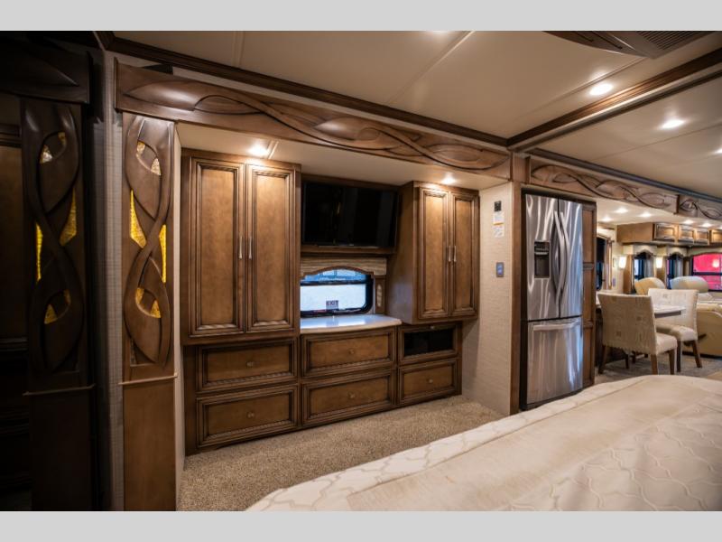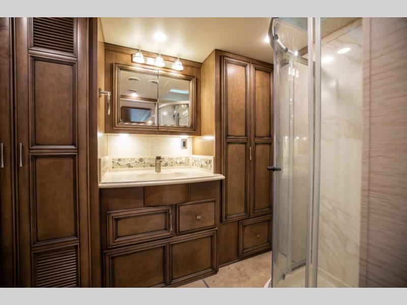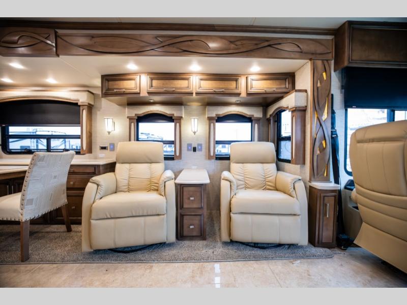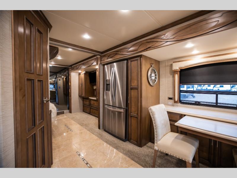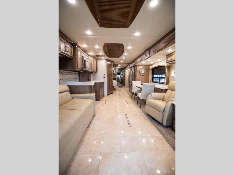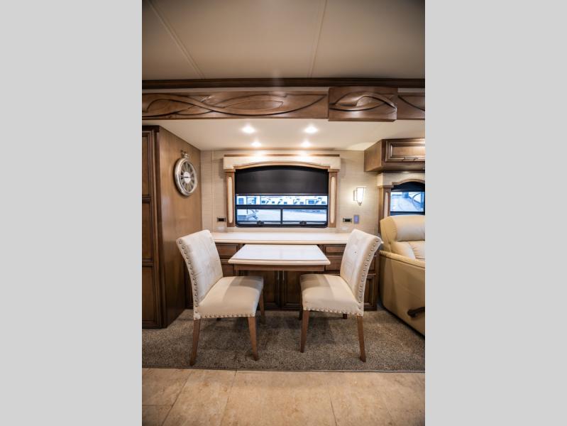 For true comfort and relaxation on any trip whether you are traveling near or far you will want a Newmar Ventana class A diesel motor home. These models are a cut above the rest with frameless double-pane tinted safety glass windows and a skylight above the shower which adds plenty of natural light. You will love the Bermuda Glazed Maple cabinets and the polished solid surface counter tops in the kitchen. When you need to get a little work done then simply set up the passenger seat work station. The polished porcelain tile floor in the kitchen, bathroom, and living room is beautiful, easy to clean, and durable! Get ready for any adventure with a Newmar Ventana!