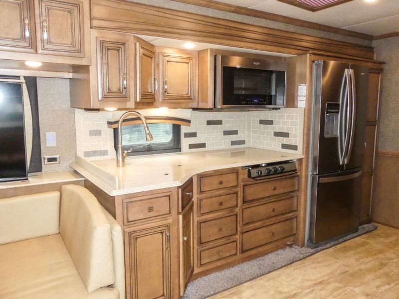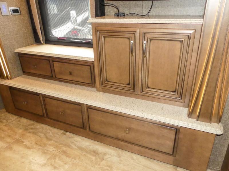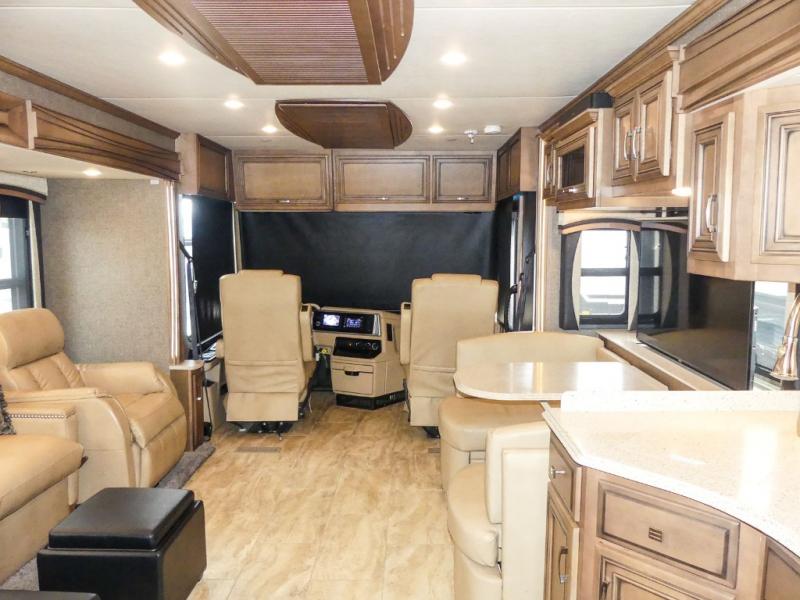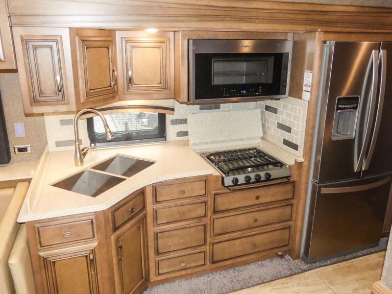 The Ventana LE class A diesel provides a modern-day motor home with inside features such as decorative wall art, concealed hinges on cabinet doors, fixed pantry shelves, and a two-piece washer and dryer. Everyone will enjoy the seating when relaxing on the Flexsteel Ultralux leather sofa, plus the driver will appreciate the six way power seat, the rearview color monitor system with audio, and the side view cameras displayed onto the rearview monitor screen. Don't worry, the passenger has a workstation, manual footrests, and a six way power seat as well. Choose your favorite layout today!