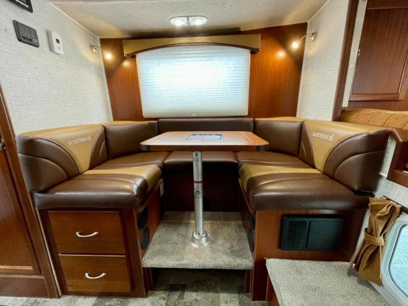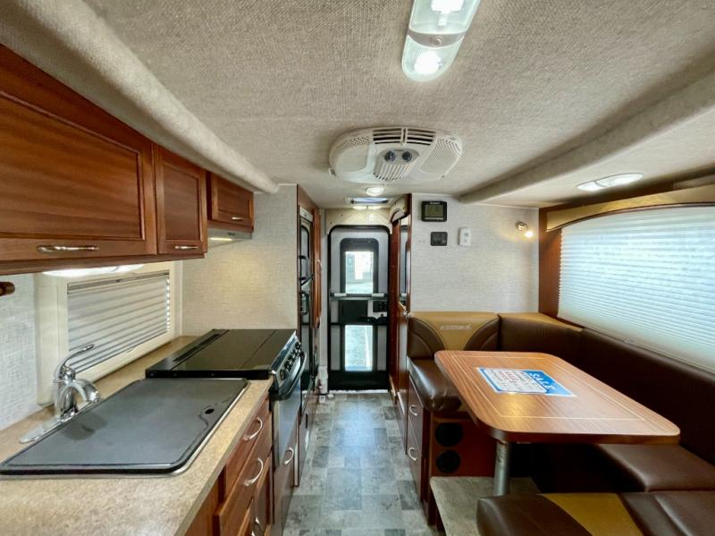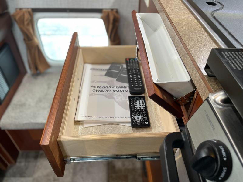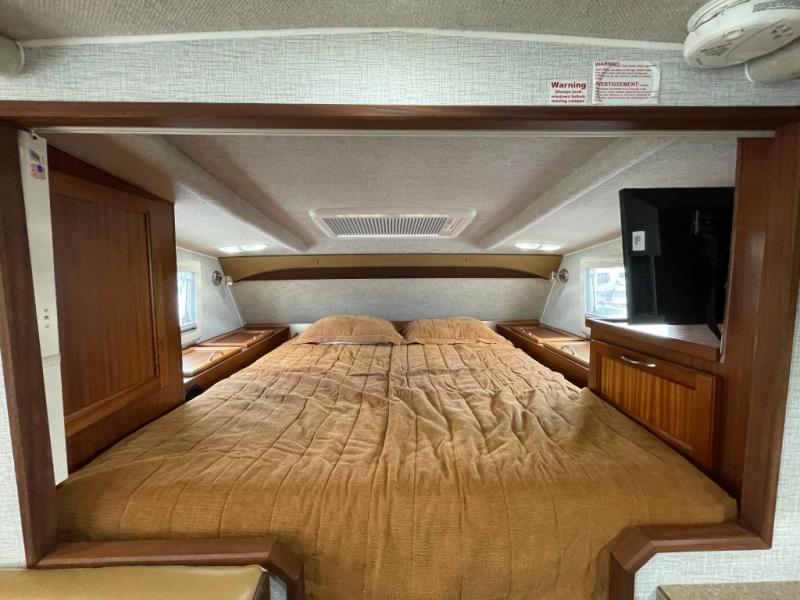 You'll love camping in this Northern Lite Limited Edition 8-11EX wet bath truck camper that features a front queen bed for you to re-charge after your adventurous days! There is storage space on either side of the bed, plus a 24" LCD TV for your enjoyment. As you leave the front bed, to the left you will find a kitchen with all of the amenities you need to whip up your best meals, and across from the kitchen there is a booth dinette or you can choose to add the optional U-shaped dinette. At the back of this camper there is a rear corner wet bath with a Dometic thermal skylight for you to soak up some sunshine even while indoors!