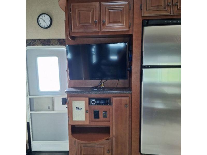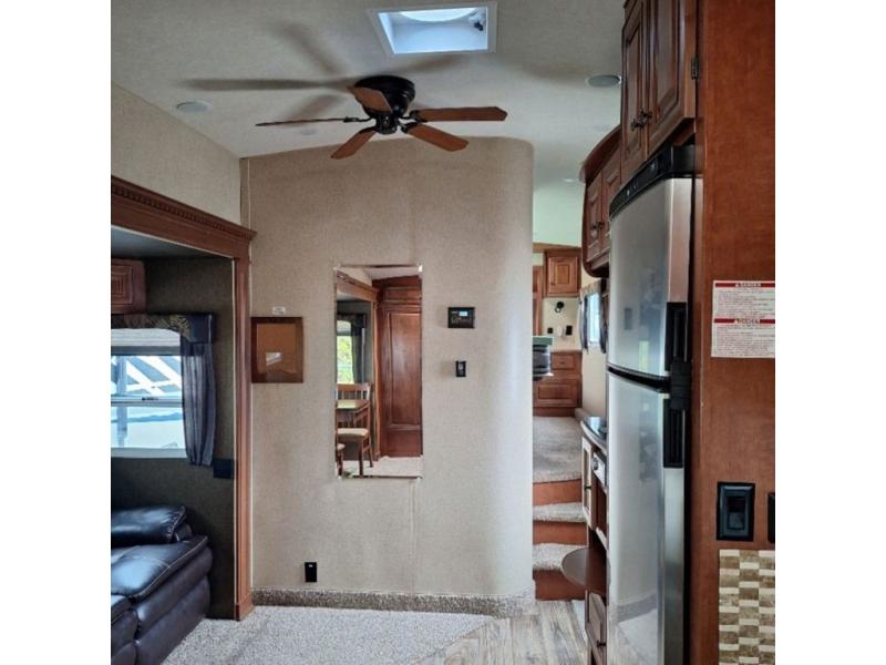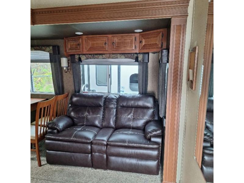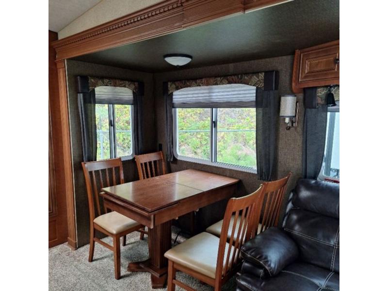 This double slide Arctic Silver Fox Edition 27-5L fifth wheel by Northwood includes a rear kitchen for easier meal prep, a ceiling fan for those hot, sticky summer days, and open floor space in the living area! You can enjoy a good night's rest on the queen bed located in the front private bedroom, plus you have a wardrobe slide out to keep your clothes neat and tidy along with an entrance into the dual entry bath. If the free standing dinette and the tri-fold sofa aren't enough seating spots then you can add the optional swivel rocker for even more spots!