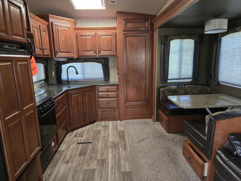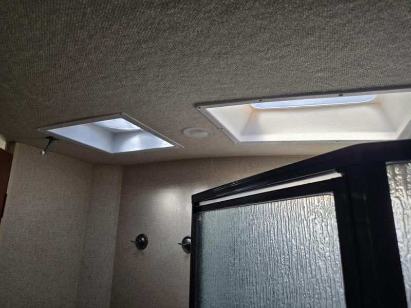 This double slide Arctic Silver Fox Edition 27-5L fifth wheel by Northwood includes a rear kitchen for easier meal prep, a ceiling fan for those hot, sticky summer days, and open floor space in the living area! You can enjoy a good night's rest on the queen bed located in the front private bedroom, plus you have a wardrobe slide out to keep your clothes neat and tidy along with an entrance into the dual entry bath. If the free standing dinette and the tri-fold sofa aren't enough seating spots then you can add the optional swivel rocker for even more spots!