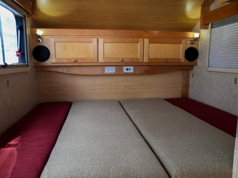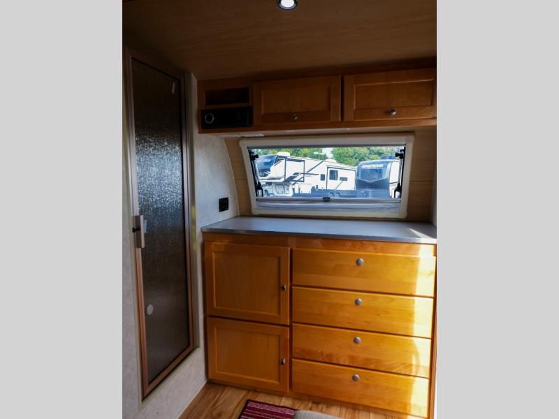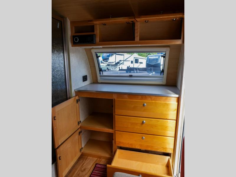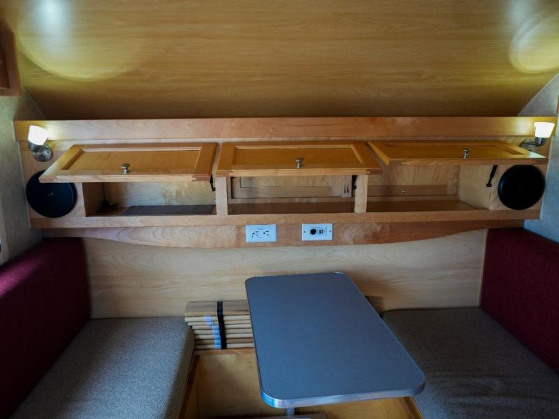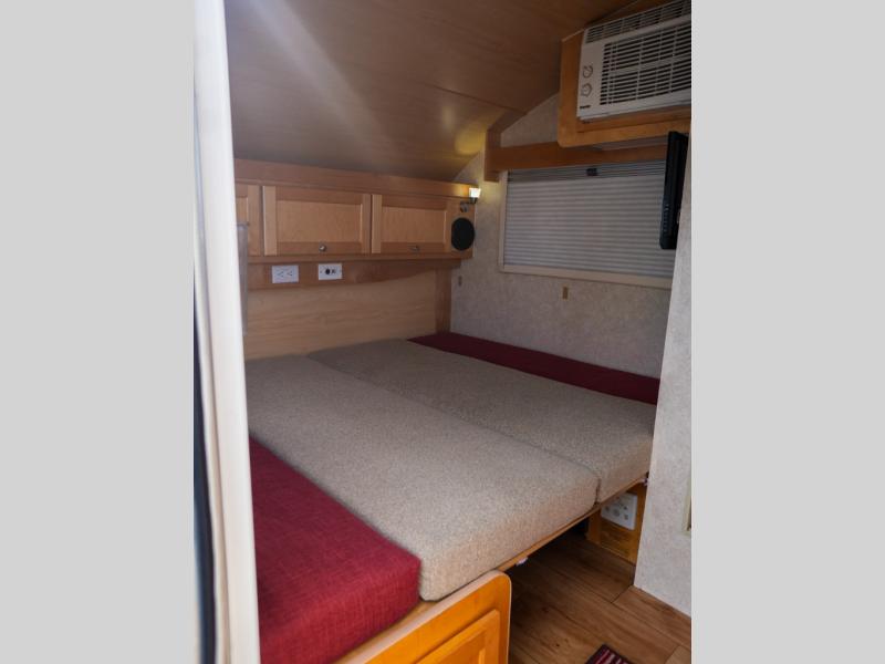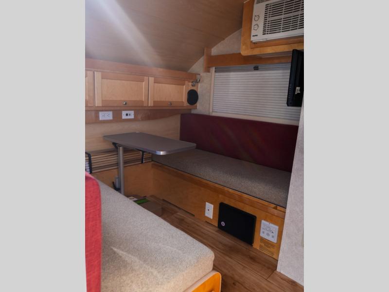 The TAB 320 by nüCamp RV is an innovative camper that has become a cult object in the RV industry. The TAB 320 is one of the most unique trailers on the market with its unconventional style, but it will surprise you with its modern and luxuriously crafted design. From the fiberglass exterior and real Ohio Amish rich wood cabinetry to the linoleum flooring and LED lighting, each one of these TAB 320 campers will have you wondering why you didn't check them out sooner. And if you enjoy taking the road less traveled, then you will certainly want to consider adding on the Boondock Lite or Boondock Edge package. These optional features, like the aggressive off-road tires, give you a leg up as you adventure throughout any rugged terrain.