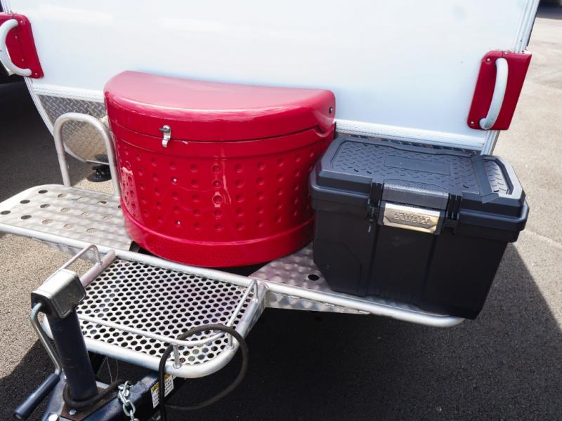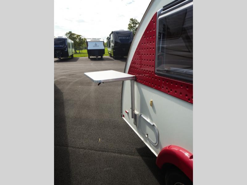 Taking this TAB 320 teardrop camping trailer on weekend getaways to the mountains will be your favorite thing to do each summer. Its lightweight design helps you get the most out of your fuel tank, and the many different storage compartments, like the under-the-bed storage, allow you to bring along any camping essentials you may need. With both a wet bath and a hatchback kitchen, you will never again have to plan your trips around restaurant and public bathroom locations because this unit contains all of the amenities you need for a successful outdoor excursion.