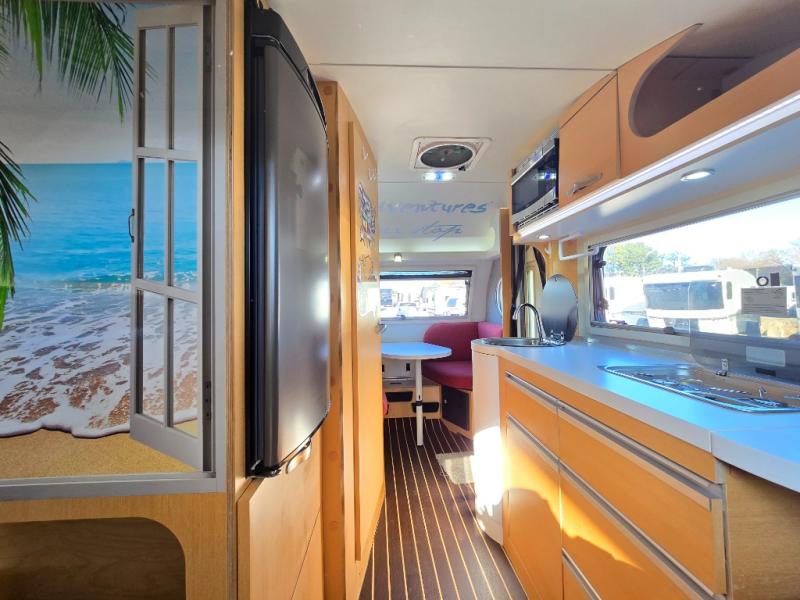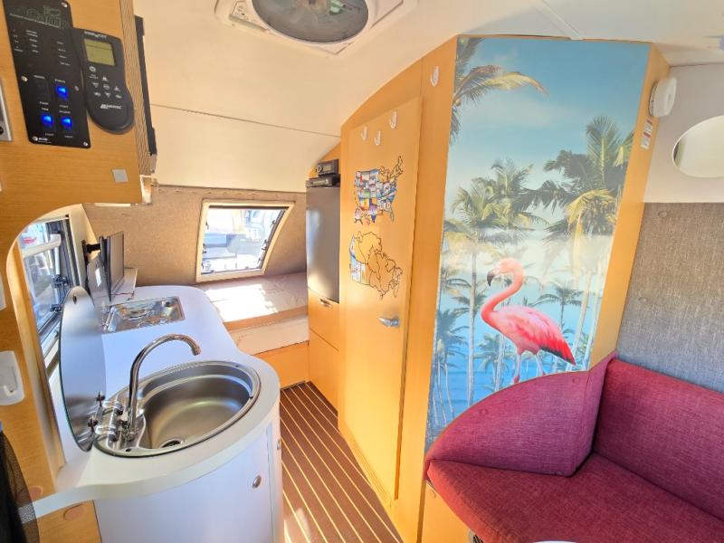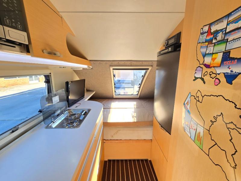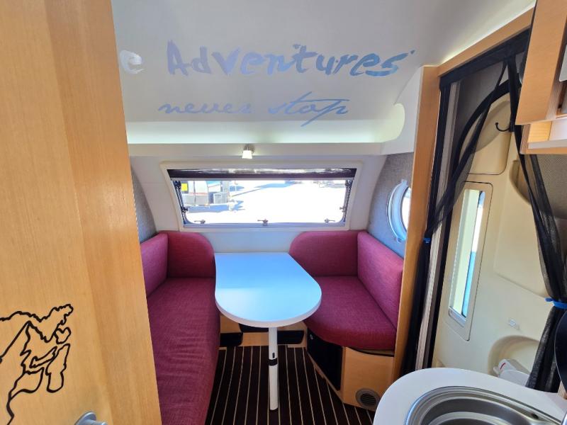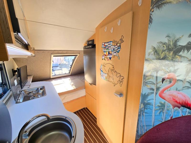 If you have ever wondered what it would be like to sleep underneath the stars and experience nature at its finest, then you need this TAB 400 teardrop camping trailer to get you there. Every night while you are lying down on the queen-size bed, you can gaze up at the luminous, moonlit sky through the stargazer window and admire the beauty that evening brings. The wet bath that has been included in this camper allows you to freely choose where you want to spend your vacation, instead of having to plan your trip around restroom facilities, and the heated floor in the wet bath area keeps you feeling comfortable while you get ready on those chilly mornings.