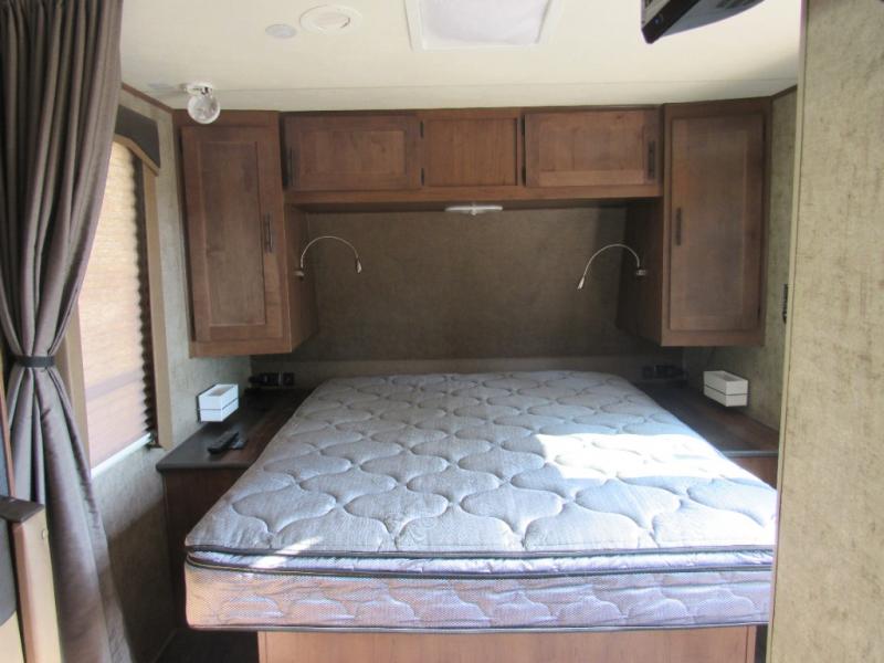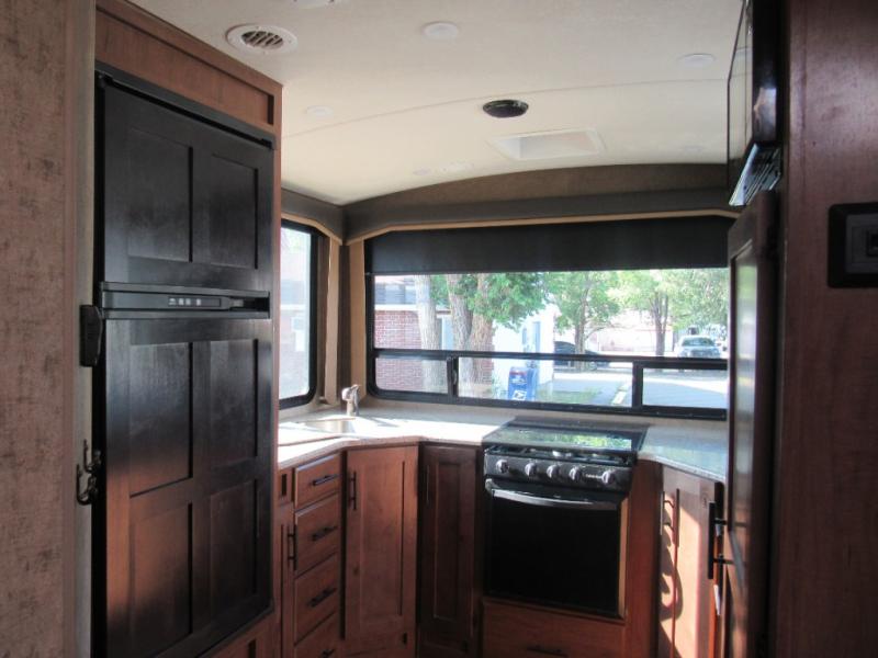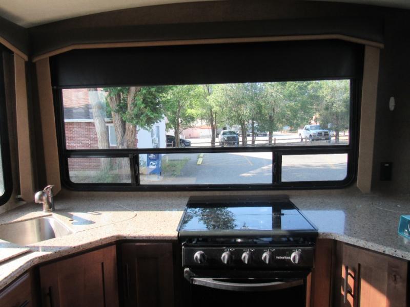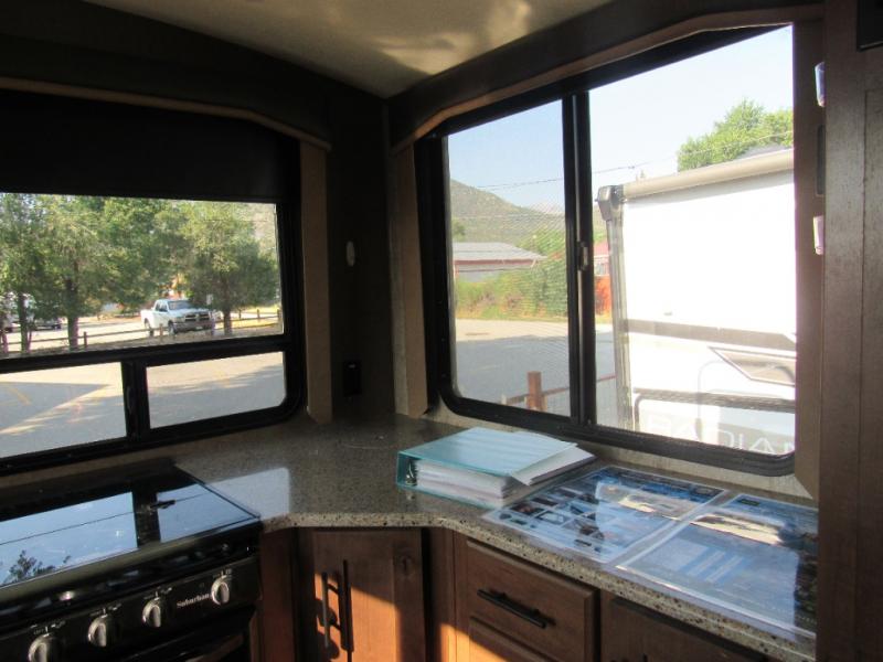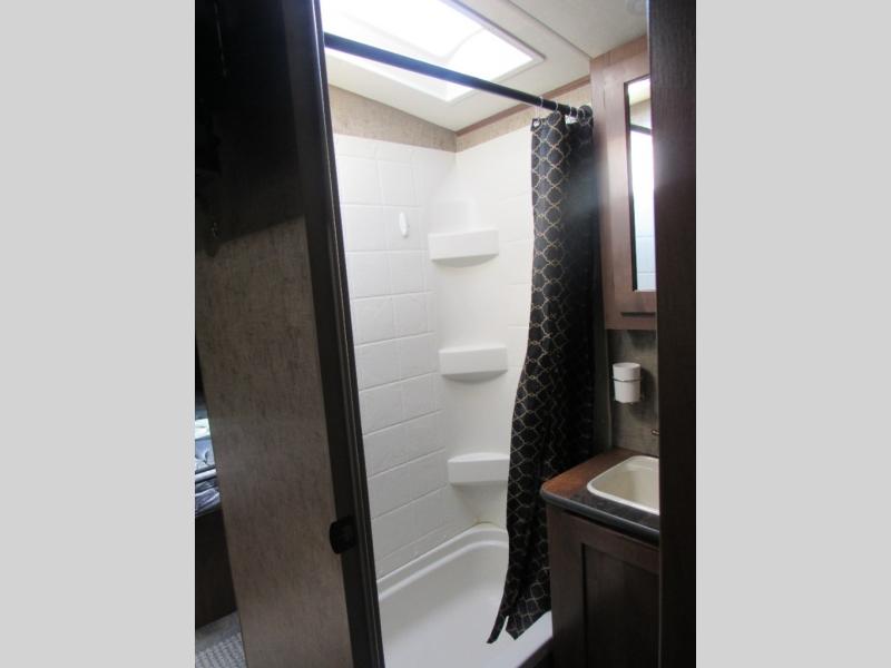 Open up your adventure options with this Creek Side Mountain Series travel trailer! You will be able to wake up and take in the majestic scenery through the surrounding windows in the rear kitchen as you start that first pot of coffee, and afterwards, you can sit down at the Mountain dinette with your bacon and eggs and feel the warm sun coming through the skylight above. Get cleaned up for the day in the full bathroom and grab a fresh pair of clothes from the bedside wardrobes.