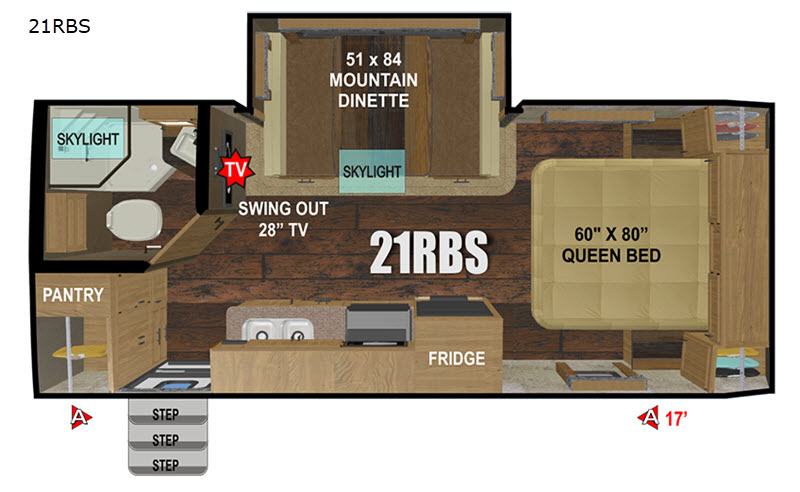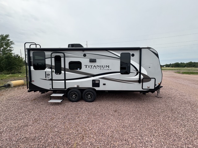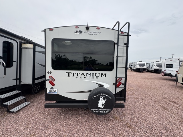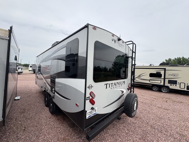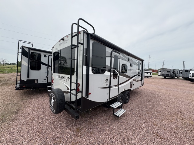 Step inside this Titanium Series travel trailer and experience a luxurious camping trip! With two skylights, LED energy saving lights, and XL panoramic windows, you will always enjoy a bright atmosphere. When you don't feel like preparing something new on the stainless steel sunken range, you can grab some leftovers from the Norcold 7 cu. ft. refrigerator and pop it into the stainless steel microwave for a quick meal. When you're ready to wind down your nights, you can head to the mountain dinette and play a card game while you play a movie in the background with the 28" swing out TV!