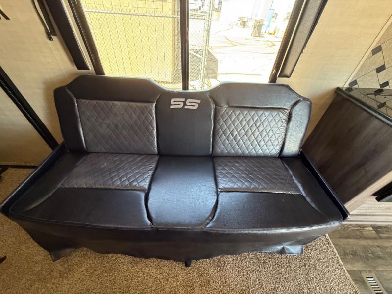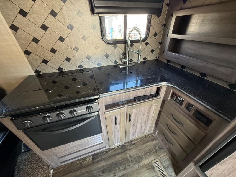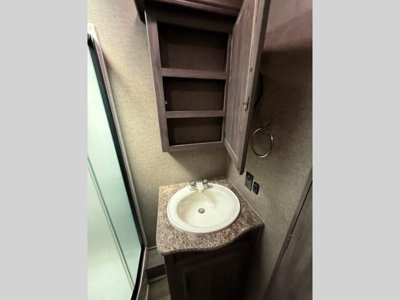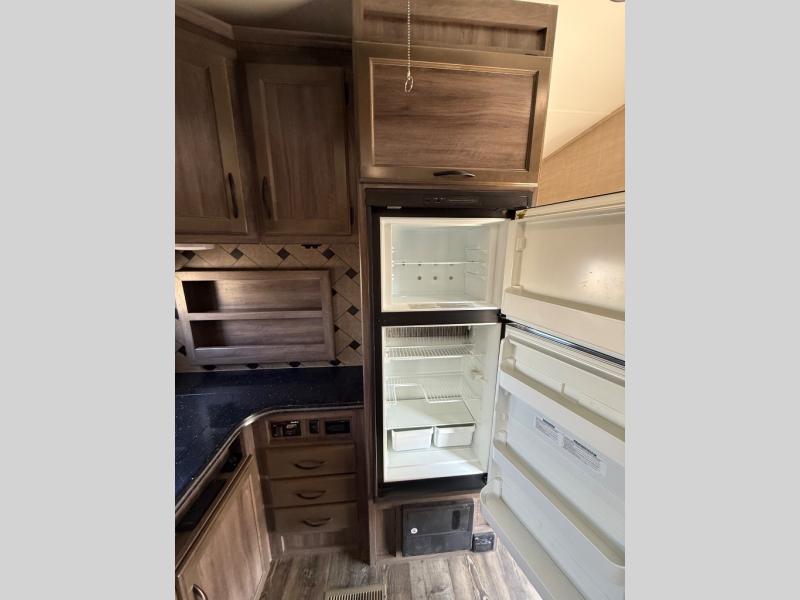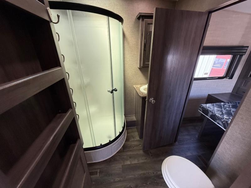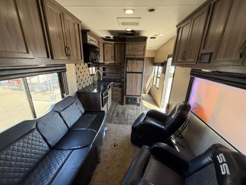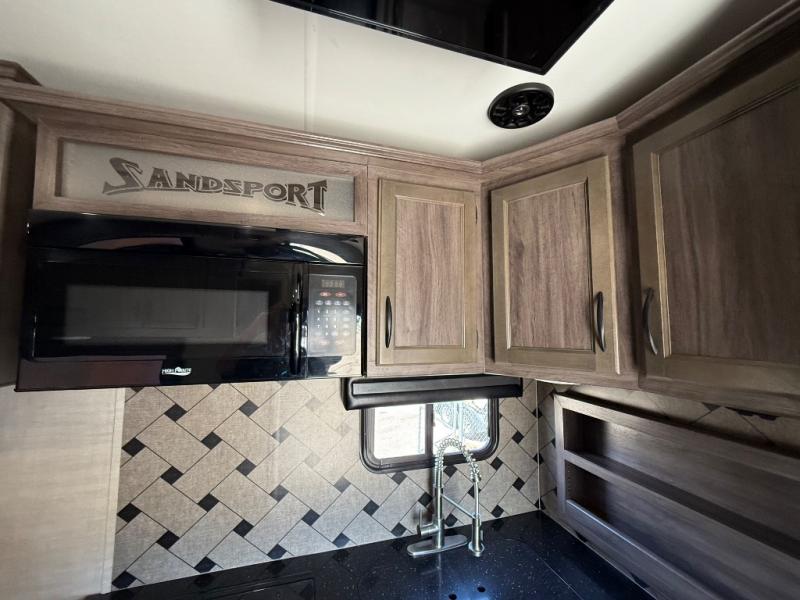 If you have been looking for a toy hauler travel trailer with a front private bedroom with a second entry into the full bathroom, this is the one. This Sandsport also includes plenty of storage for your clothes, off-road gear, dishes and such. The large oven and fridge will help you out tremendously with cooking for the gang and storing your food while you are away from home. You have up to 13' feet of cargo storage for your toys while you are on the road. Once your toys are unloaded there is an electric bed that can be used at night, plus a sofa and two chairs. Take a look today!