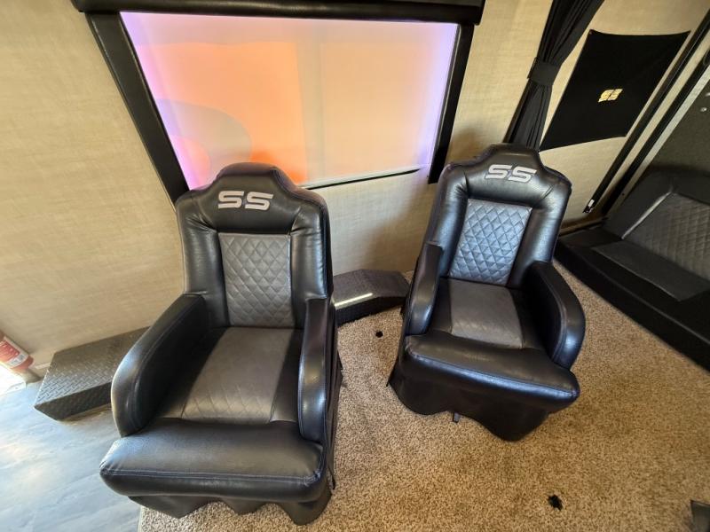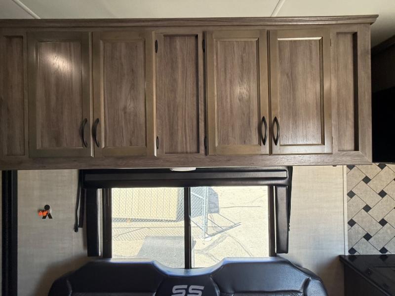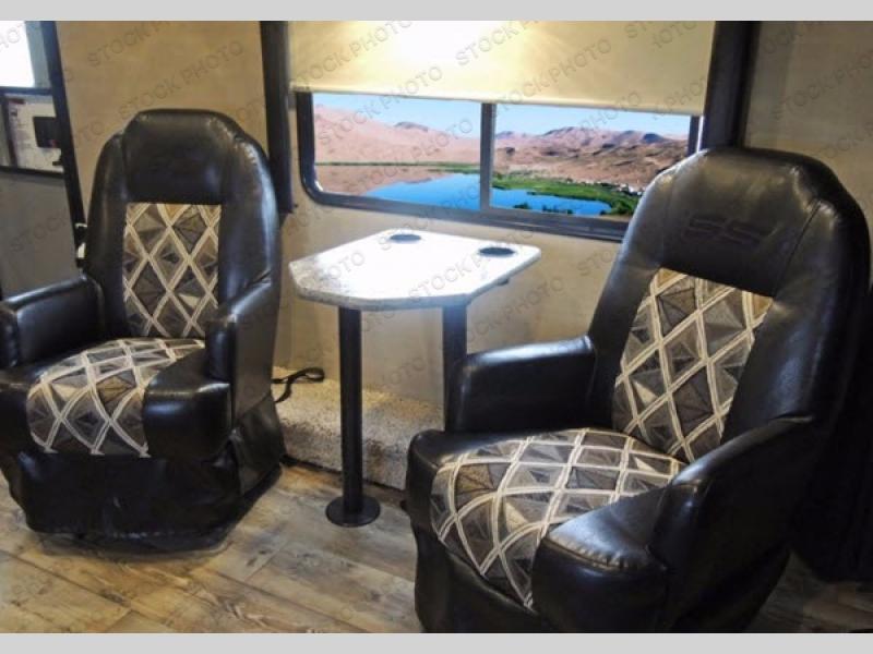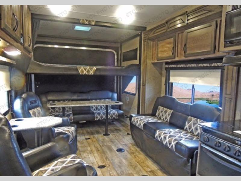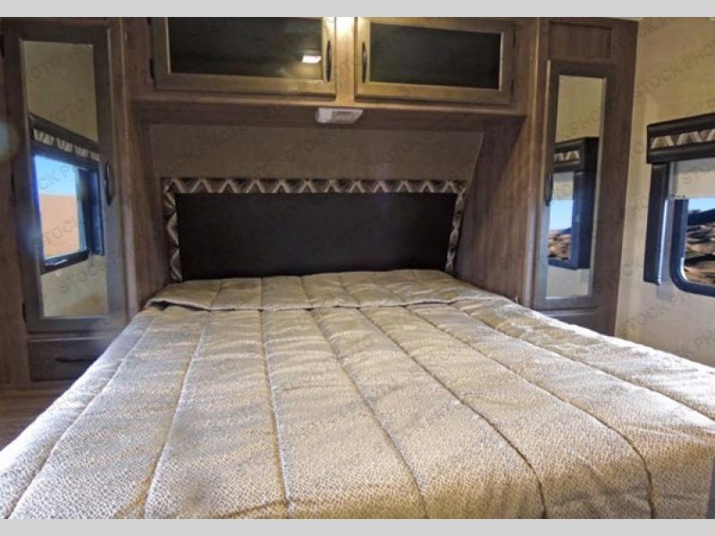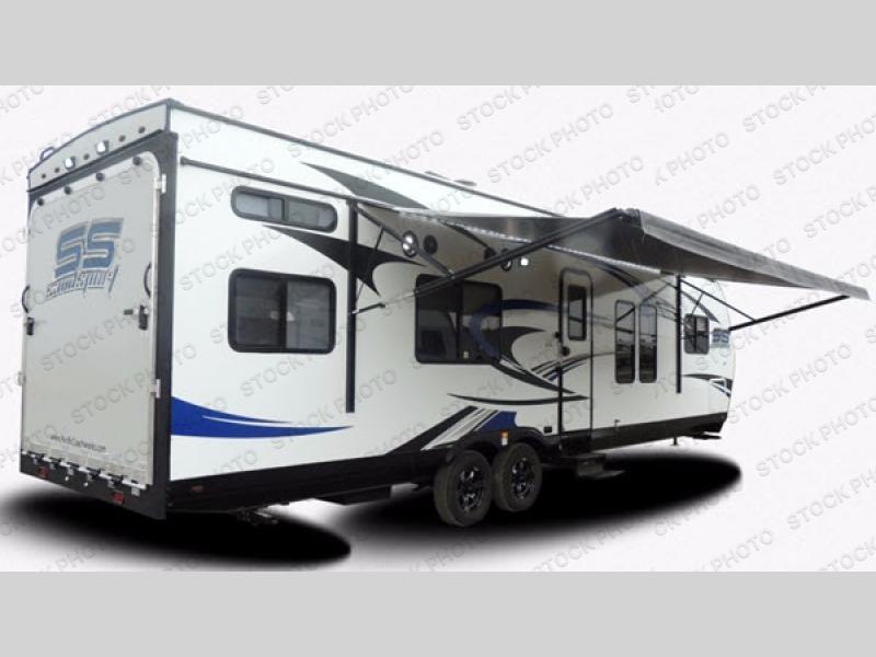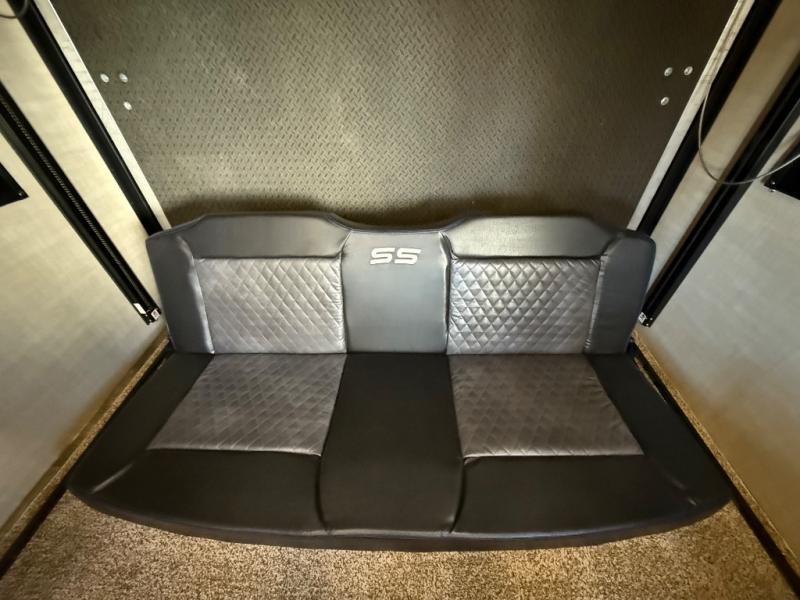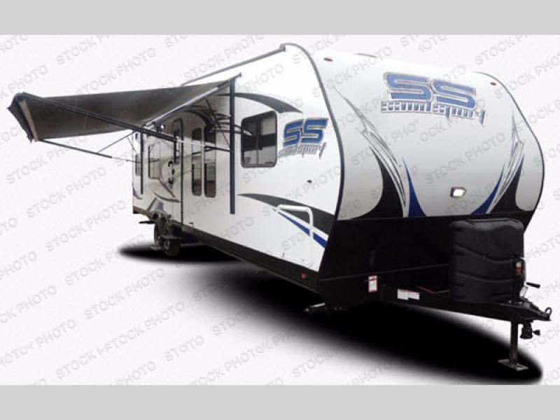 Each Sandsport toy hauler travel trailer is built with aluminum framed fiberglass siding, and a front diamond plate for exterior protection moving down the highway. Inside the cargo area, you will appreciate the 2,500 lbs. capacity tie-downs and the Toy Lock security system that holds your toys safely in place. The solid surface countertops, the LED lighting with dimmer, and pillowtop queen bed will make any trip enjoyable. Choose your favorite layout, and get moving with your off-road toys!