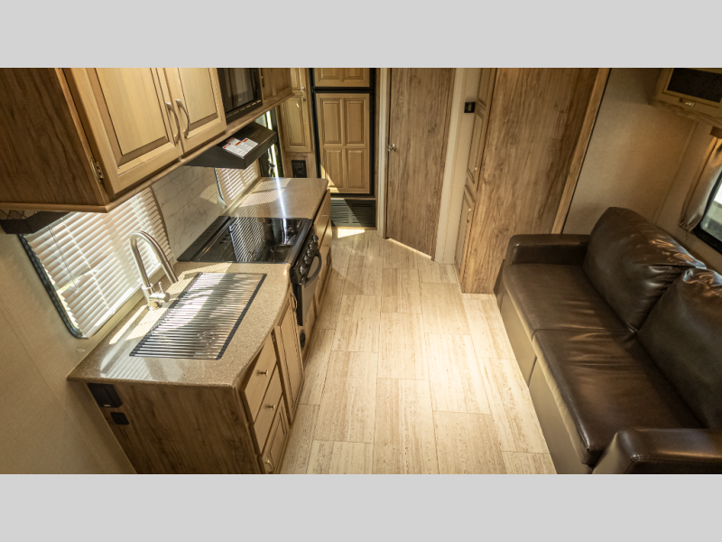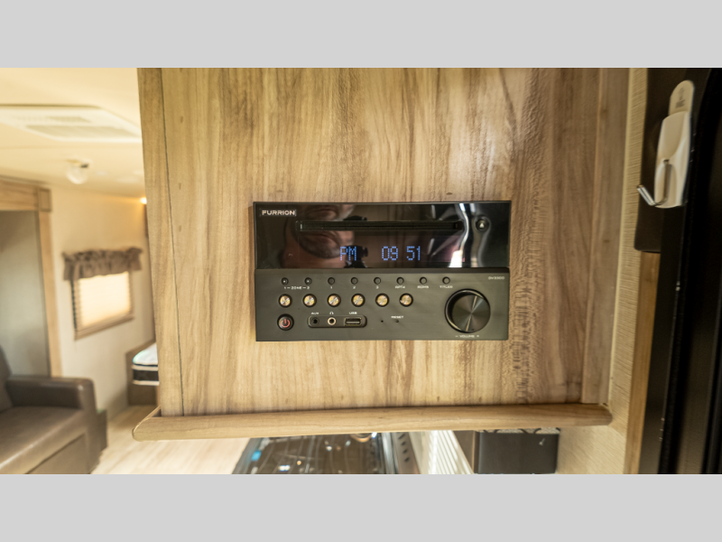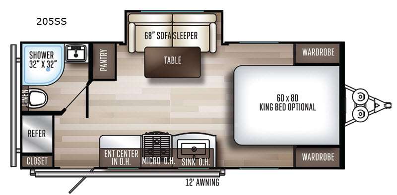 - Slide-out doubles living space; 12-ft power awning with LED lights