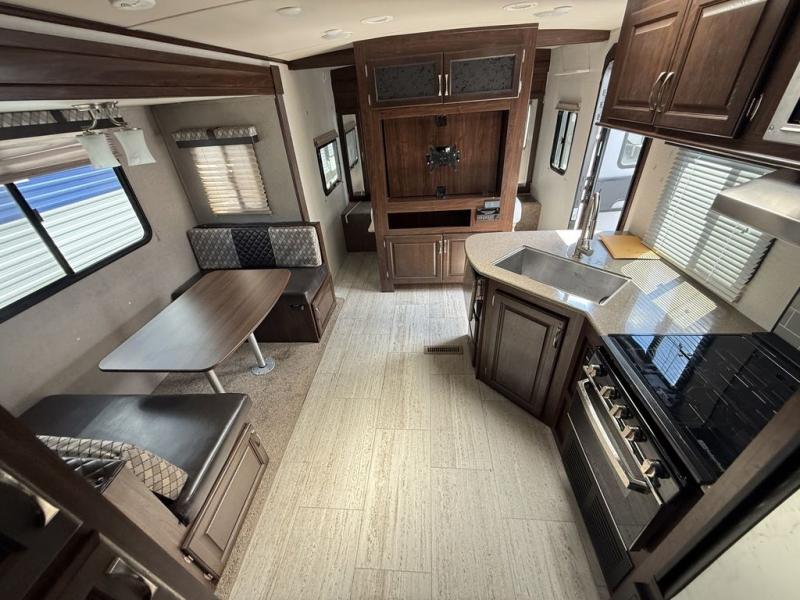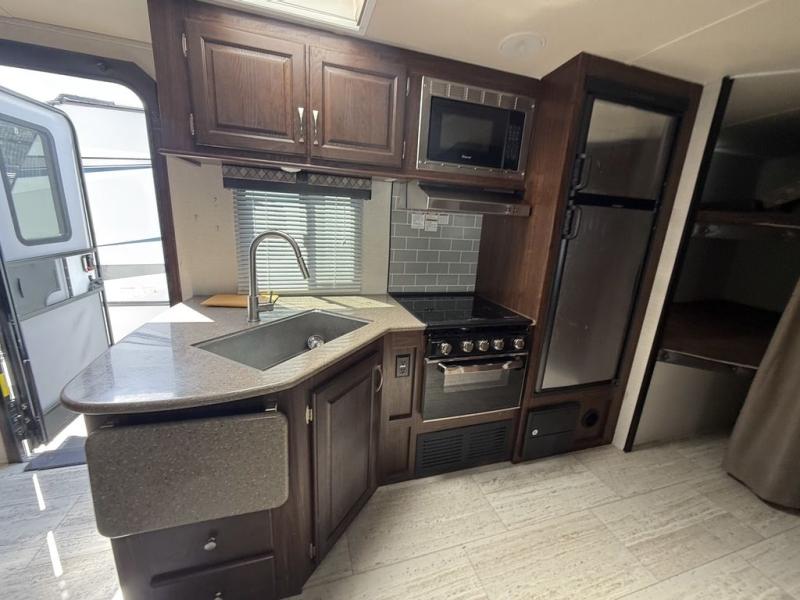 If you enjoy superior amenities that are revamped and up to date, or if you enjoy floorplans that have been designed with your needs in mind, then the SolAire Ultra Lite is the perfect match for you. Because Palomino has included LED lighting throughout each unit, the whole atmosphere is kept bright and fresh. The kitchen skylight lets the sun's rays shine through each morning to illuminate the space even more. These Ultra Lite travel trailers include a Furrion HDMI stereo with DVD and Bluetooth capabilities, which allow you to stay connected to the modern world while you camp. You will find that one of your favorite ways to conclude each day will be to spend it outside underneath the power awning with LED lights as the sun fades away. Choose one of these SolAire Ultra Lite travel trailers today for your next adventure!