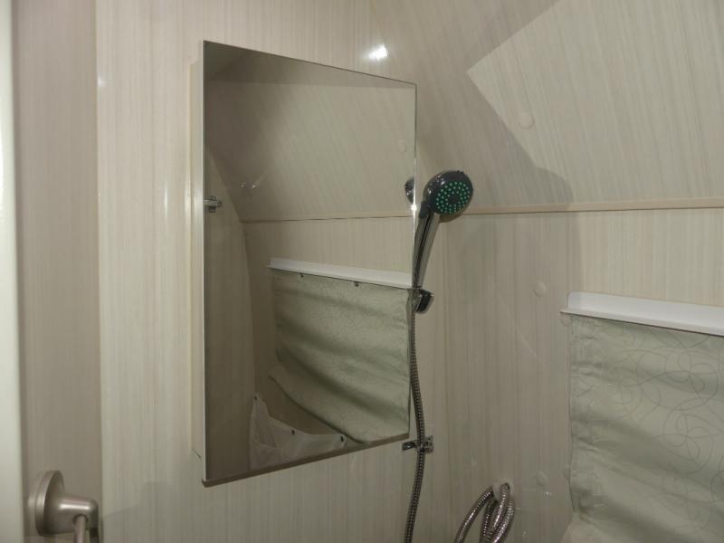 What I liked most: I like the inside. Good size bathroom and refrigerator. Bed is comfortable now that we put a 2 1/2 in mattress cover on it.