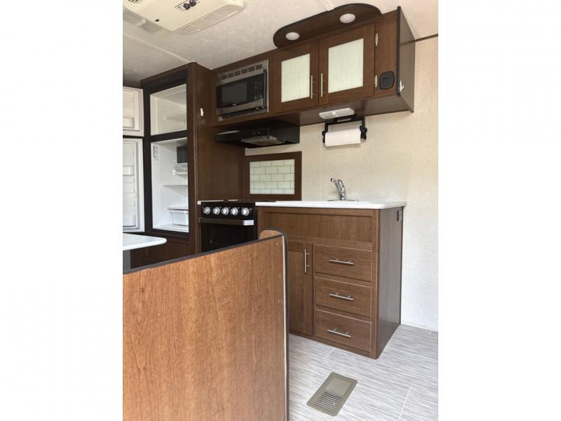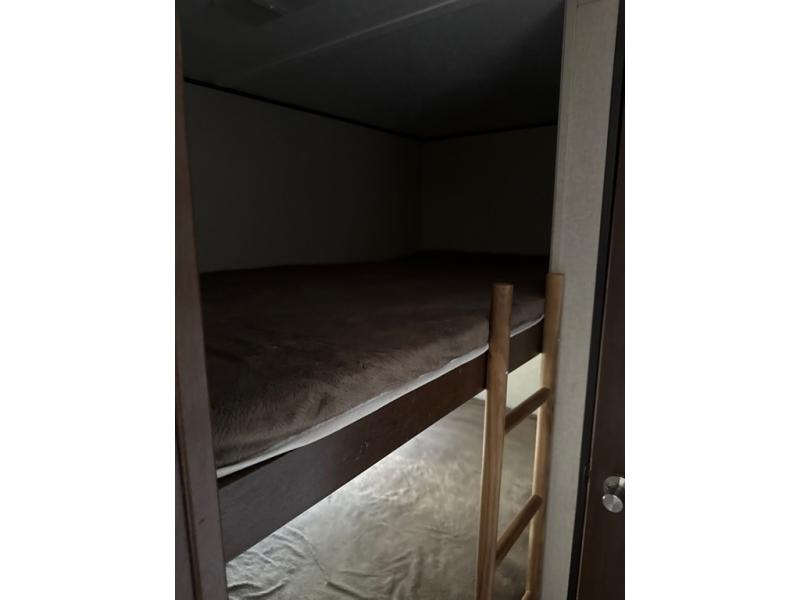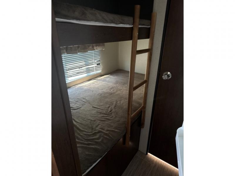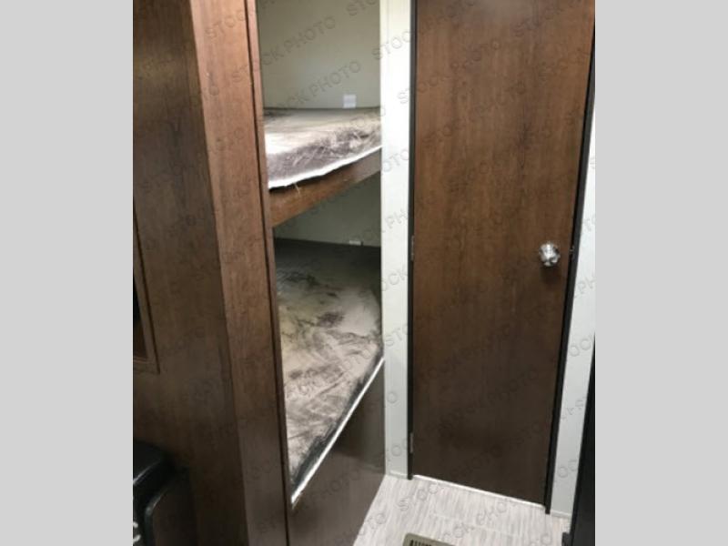 When it's time for your next get-a-way, hook up this Avenger travel trailer for a great time that is sure to leave lasting memories. You will enjoy a front private bedroom with a queen bed, and two closets for all your clothes. This unit features large double bunks that the kids are sure to love, plus the dinette can be folded down for a little one to sleep on at night. With all the kitchen amenities, including a three burner cooktop, and a deep basin sink, you'll have everything you need to prepare a home cooked meal in this trailer. This model also includes a private toilet and tub room with a sink and overhead medicine cabinet just outside the bath door! Get an early start on your next camping trip with this Avenger travel trailer!