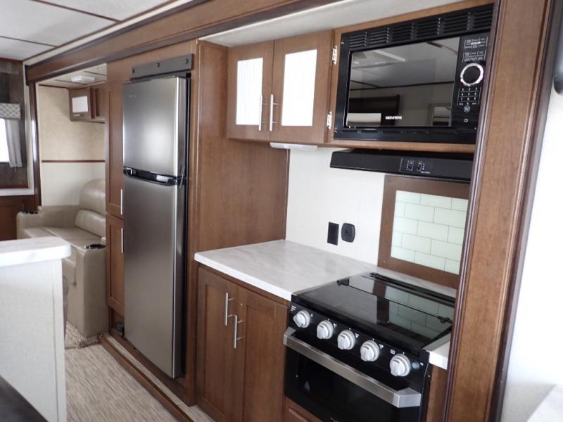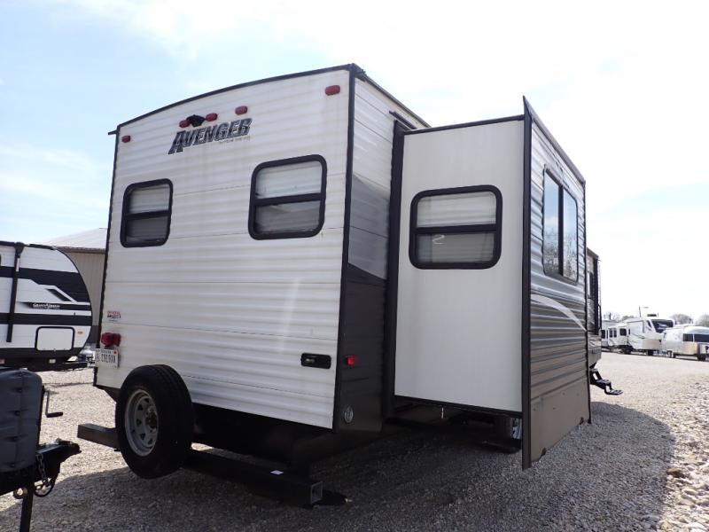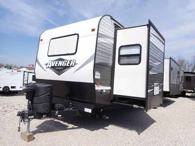 With any Avenger travel trailer you will feel secure knowing the EVERLAST Construction provides 2" wall construction on 16" centers, and cross banded construction. You will appreciate the outside shower providing an extra place to clean off, as well as the marine grade outdoor speakers, allowing you to enjoy being with family and friends outdoors. Each unit features a fully enclosed underbelly, and the extra large exterior grab handle provides safe entrance. The mandatory Advantage Package includes additional features that you will find useful such as a restaurant style kitchen faucet, LED interior lighting, a large double door refrigerator, and a flush mount glass range cover. It's time to take your next journey in an Avenger travel trailer by Prime Time RV!
