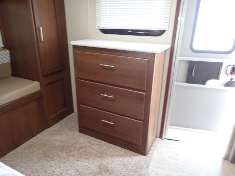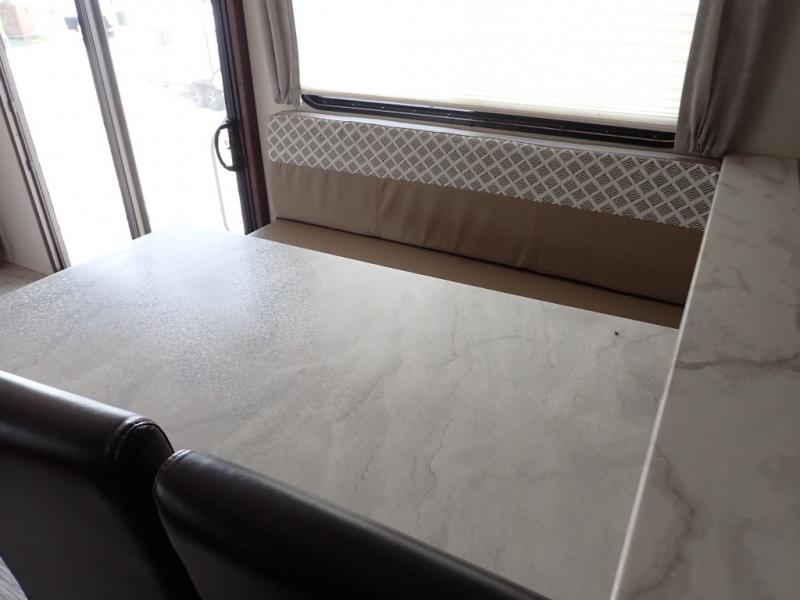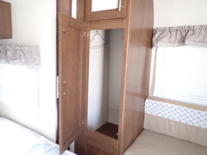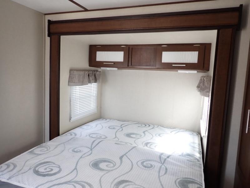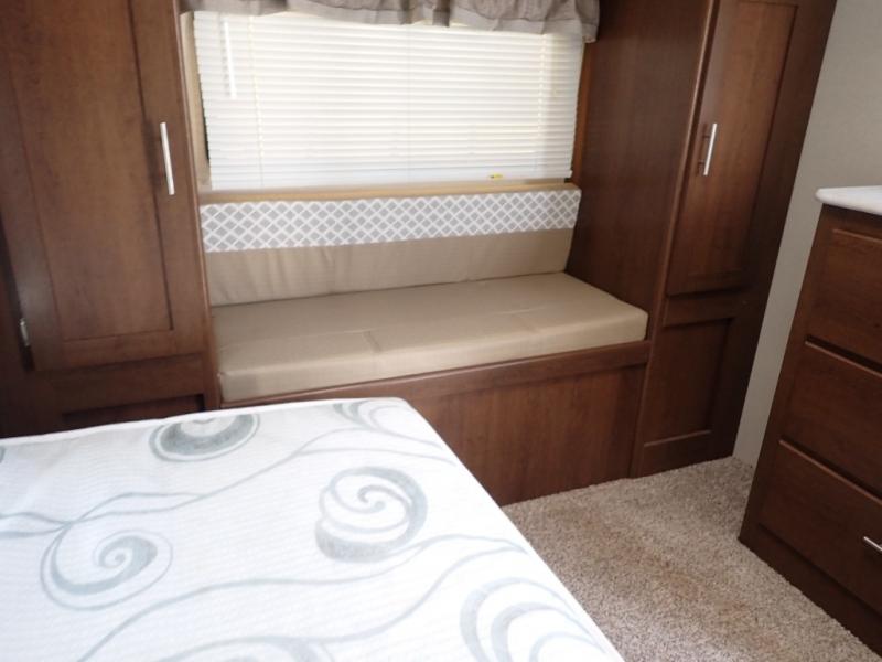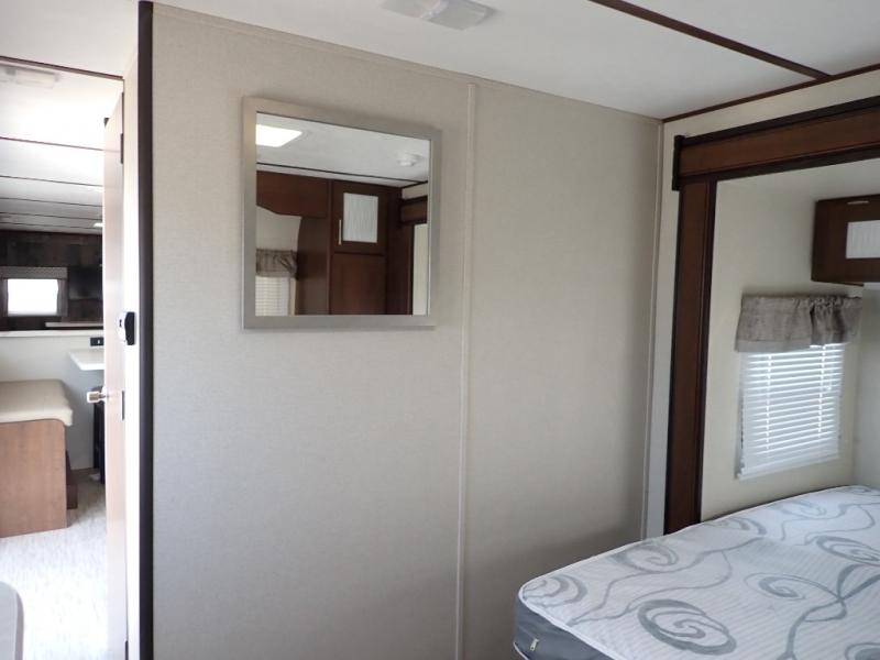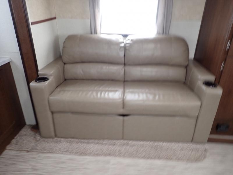 This Avenger travel trailer is perfect for your family of six looking to escape to the outdoors. The front private bedroom includes a bench seat with two wardrobes on either side that mom and dad will love to relax on after a long day. This unit features a rear entertainment area with a hide-a-bed, and a jack knife sofa for the kids or grandparents to sleep on at night. Preparing family dinners in this trailer is easy with a three burner cooktop, plus a microwave, and plenty of counter space. The kids will love to sit at the hi-top dinette that includes a booth seat on one side and two chairs on the other. This model also features a bath with a large shower with a skylight, and a linen closet for extra towels. Come see today why this travel trailer is the one for you!