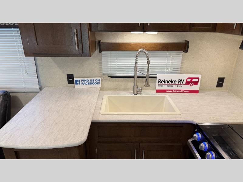 With any Avenger ATI travel trailer, you will feel secure knowing that it has been made with exclusive Everlast construction, and the Dexter E-Z lube axles provide safety and peace of mind while traveling to your favorite locations. Once you have set up camp, you will appreciate the exterior shower that provides an extra place to clean off and the LED-lit power awning that lets you relax outside with family and friends.