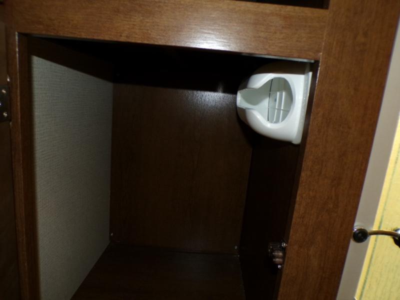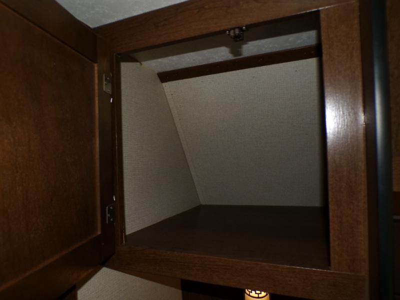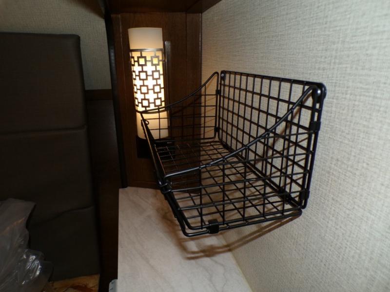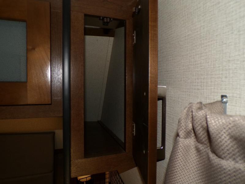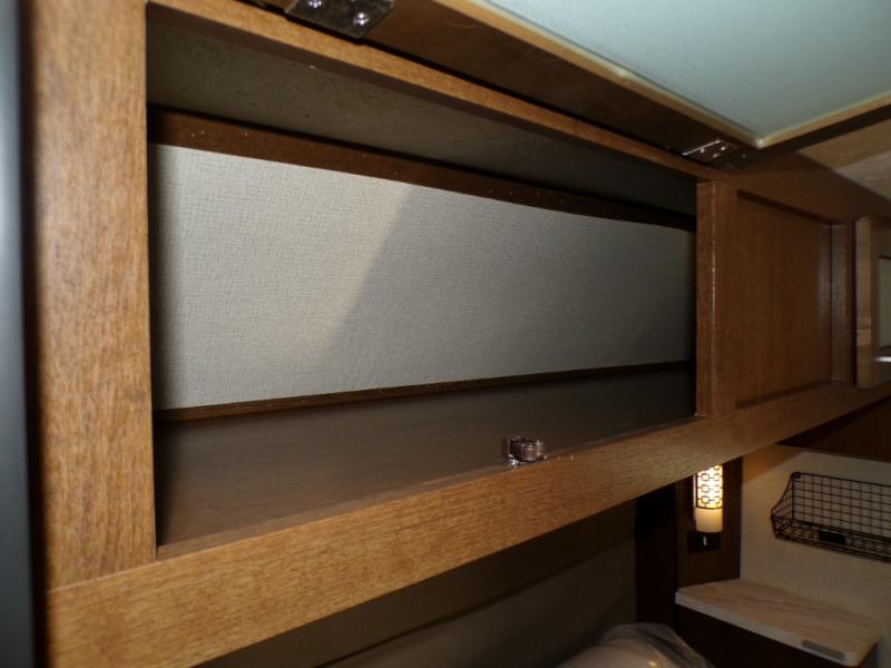 What I liked most: Ceiling storage is convenient and doesn't rob too much space. Bedroom has plenty of storage next to and around the bed.
