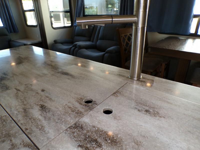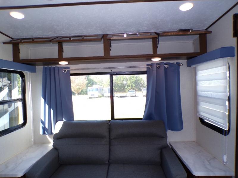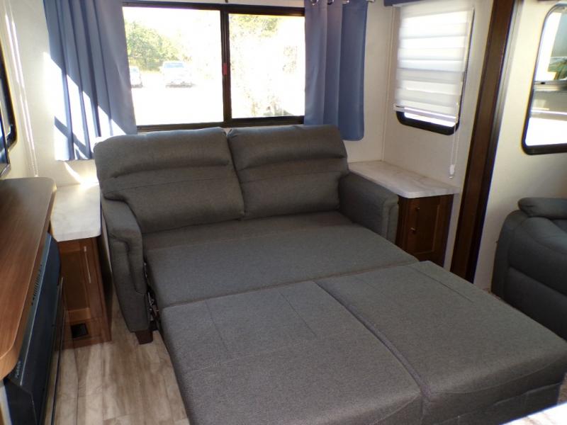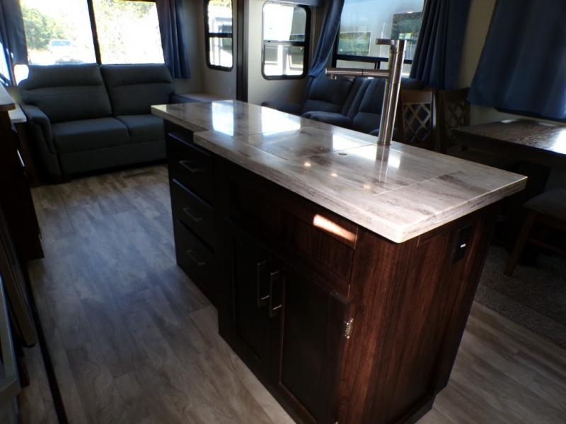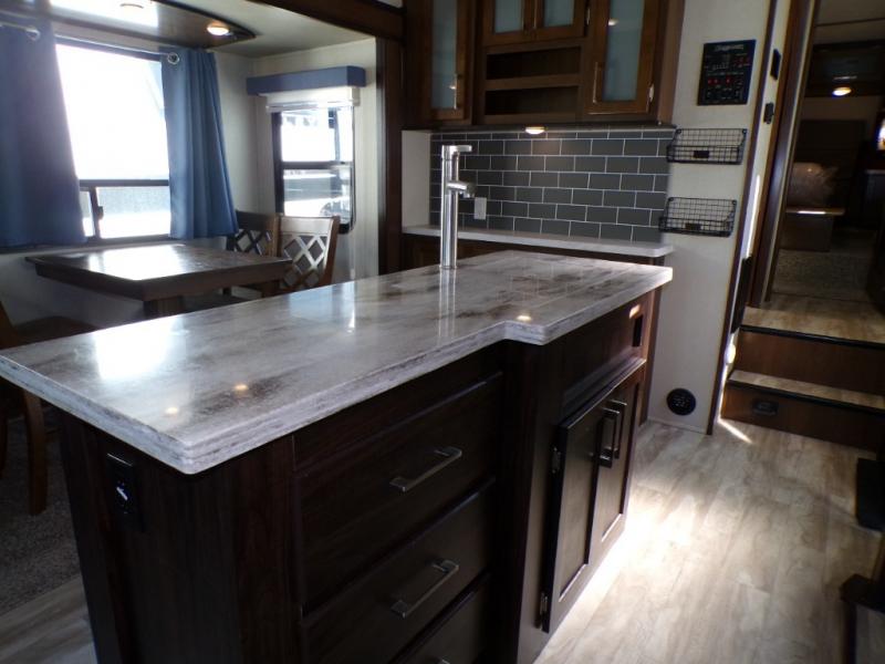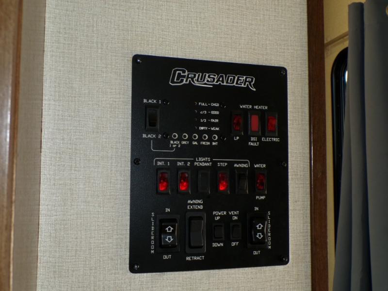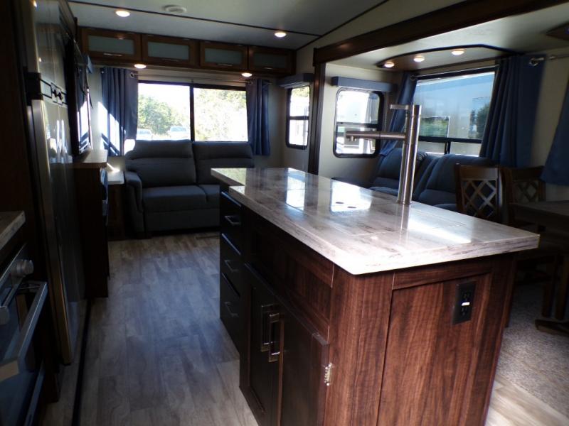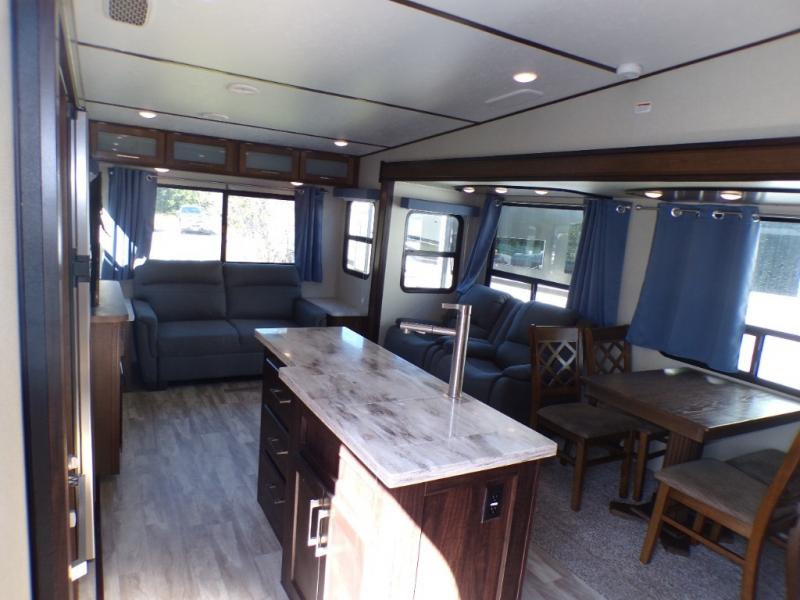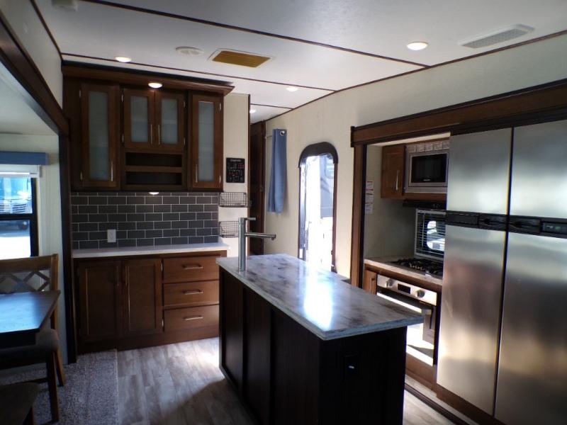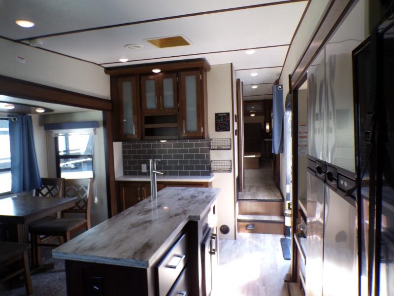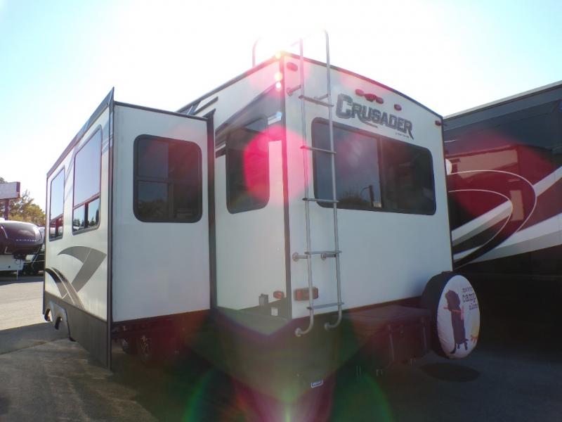 Are you ready for a camping experience like you've never had before? Relax in style and in comfort with this Crusader fifth wheel. From the fully-equipped indoor kitchen with an island, and a pantry, to the outdoor kitchen, this unit is packed full with everything you need to make your family a home cooked meal. Mom and dad will love the front private bedroom, and a slide out large wardrobe for all their clothes. Spend your evenings with loved ones in the rear living area that includes theater seats, and a hide-a-bed sofa. This fifth wheel is waiting to be yours today!