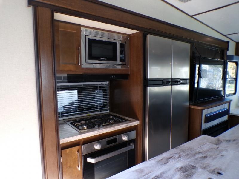 In any Prime Time Crusader fifth wheel you will find the exclusive Eternabond Construction, which includes aluminum framed side walls, end walls, and main floor to ensure years of use. The king size shower with a seat and the Deluxe Skyview Skylight over the tub allows you to get ready for the day without feeling cramped. Each unit features a 5,100 BTU LED fireplace, an LED lighted awning, USB charging stations, and a large LED TV. You'll enjoy stainless steel appliances in each kitchen, as well as solid surface counter tops, polished Nickel fixtures and hardware, and a deep, single bowl sink. Make the choice today to start a new adventure with one of these Crusader fifth wheel's!