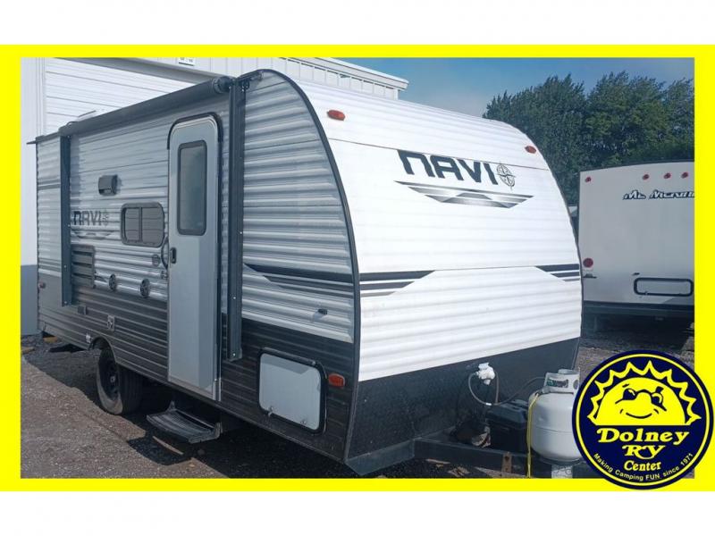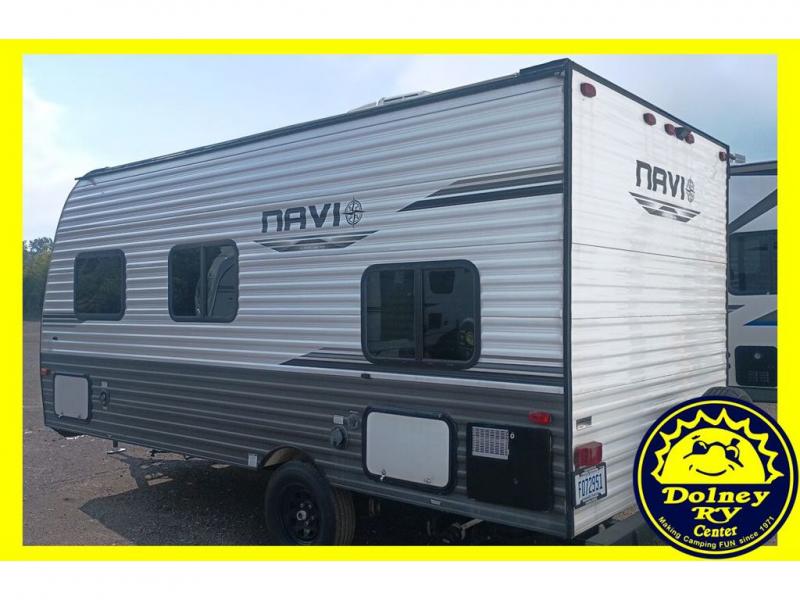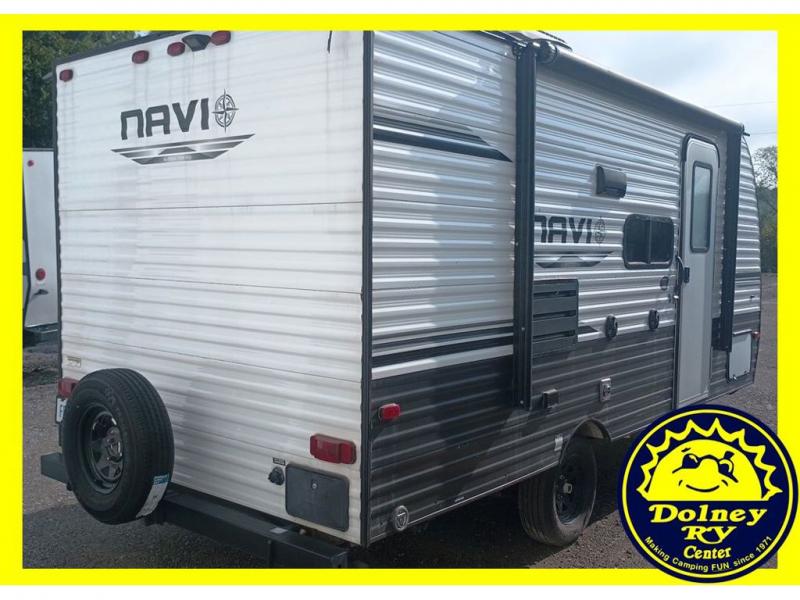 Are you ready for fun and adventure? Look no further than this Navi travel trailer. Pack up for your family of four or five and hit the road. Conveniently towable with a minivan or SUV, you'll be ready in no time without having to purchase an extra vehicle to tow it. After a day of hiking, the kids will love sleeping on the bunk beds, especially with a skylight above the top bunk. Enjoy the LED power lit awning as you make s'mores around the campfire or turn on the LED lit outdoor speakers and have a dance party with friends and family. With enough storage for your valuables and board games, this travel trailer makes camping easy! Come check this one out today and let the adventure begin.