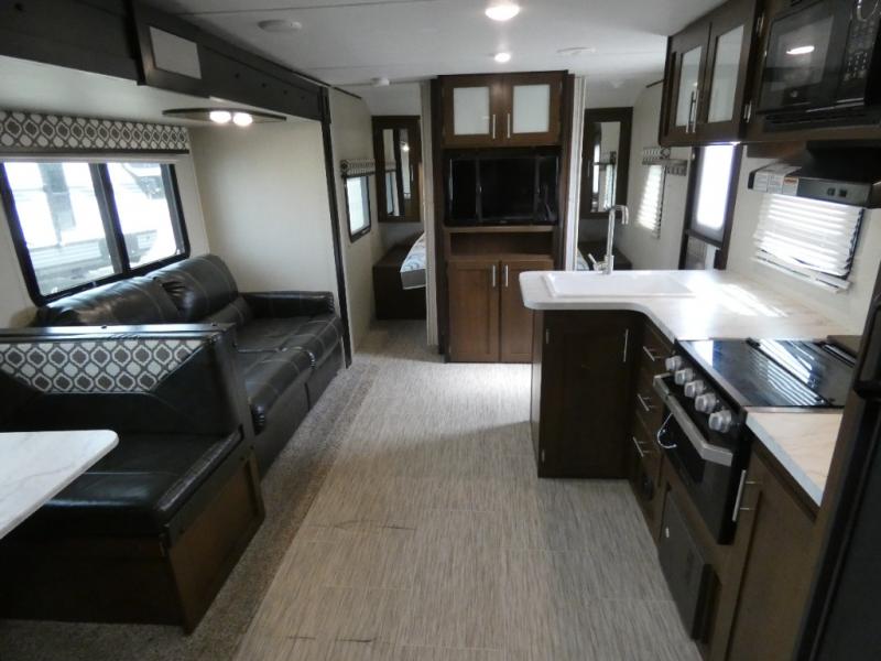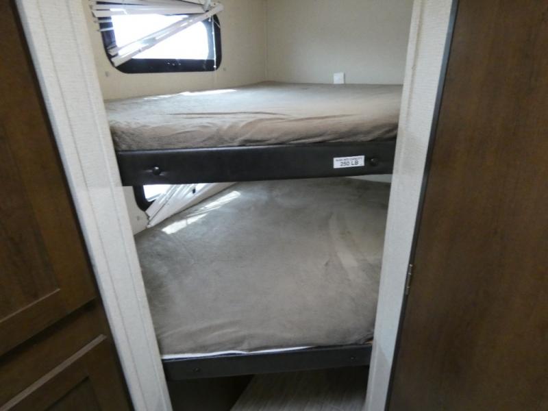 Sleeping space for eight sleepy campers, an indoor and outdoor cooking space, plus a single slide out for added roominess makes this Tracer Breeze travel trailer by Prime Time RV a great choice for any larger family! Model 26DBS offers a foam queen mattress for the owners to rest while the kiddos laugh and tell stories while laying on the double bed bunks or sofa once folded down. The rear bath is conveniently next to the bunks for easy access at night for the kids, and the main living area offers an LED flat screen TV and a slide out with a booth dinette and sofa for everyone to enjoy. The chef in the family might be cooking on the outside kitchen if you can't find him inside. Take a look today!
