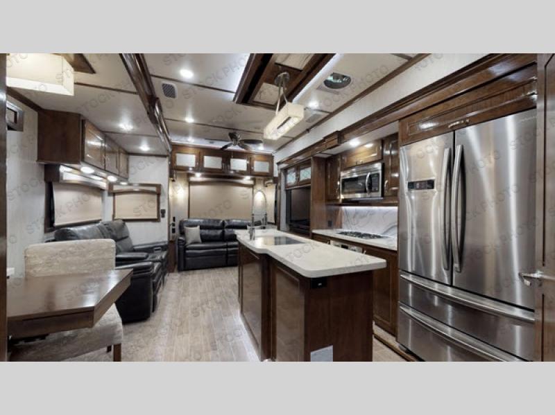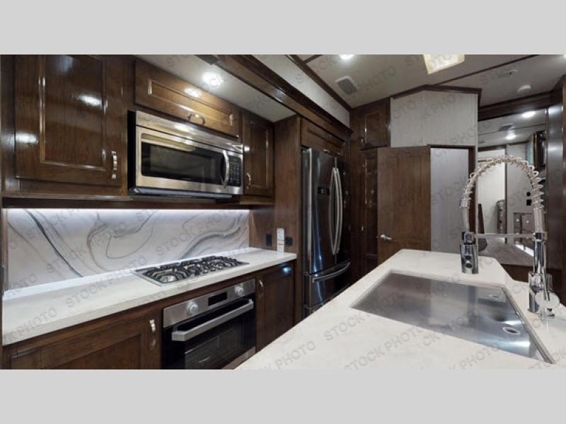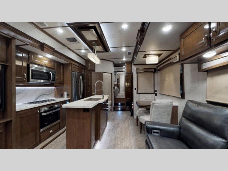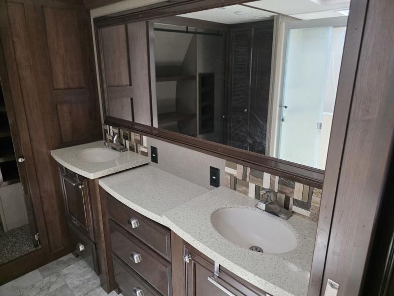 All Redwood fifth wheels are filled from top to bottom with luxury. With the Full-Time Living Package included, you can easily make a Redwood fifth wheel your home. This package features a FIT 2.0 chassis, a large high rise island with a pullout cutting board, a full pantry with a sliding drawer, and more! Each unit has plenty of residential features, including, a complete kitchen with residential appliances and storage spaces, plus solid surface counter tops and sinks to make you feel right at home. These fifth wheels also include the Redwood Parks Package, which feature high gloss Cherry cabinet doors, a 39" LED HDTV in the bedroom, USB ports throughout the unit, plus so much more! Come make one of these Redwood fifth wheels yours today!