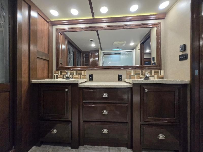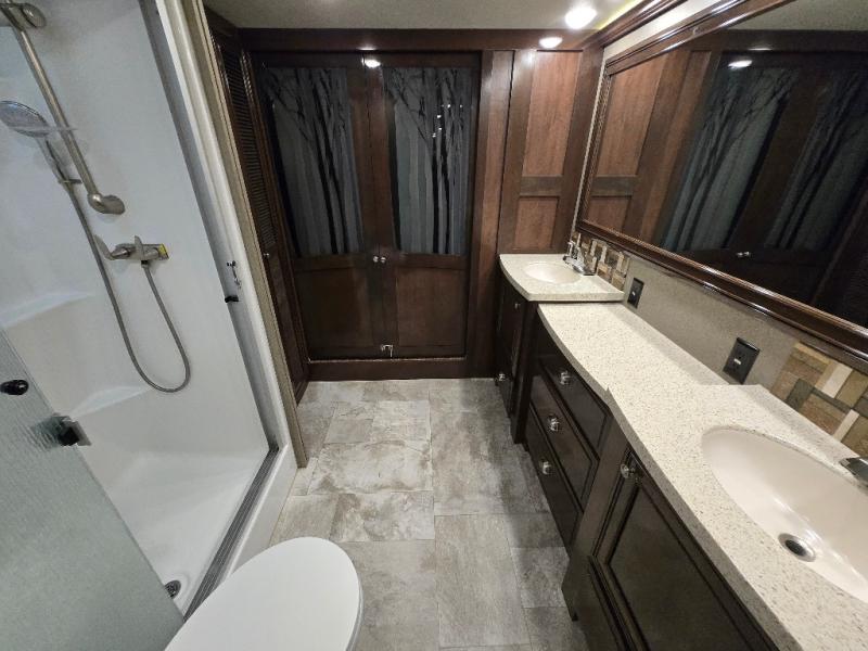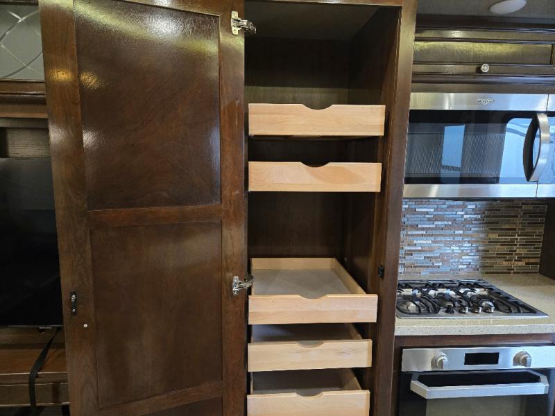 All Redwood fifth wheels are filled from top to bottom with luxury. With the Full-Time Living Package included, you can easily make a Redwood fifth wheel your home. This package features a FIT 2.0 chassis, a large high rise island with a pullout cutting board, a full pantry with a sliding drawer, and more! Each unit has plenty of residential features, including, a complete kitchen with residential appliances and storage spaces, plus solid surface counter tops and sinks to make you feel right at home. These fifth wheels also include the Redwood Parks Package, which feature high gloss Cherry cabinet doors, a 39" LED HDTV in the bedroom, USB ports throughout the unit, plus so much more! Come make one of these Redwood fifth wheels yours today!