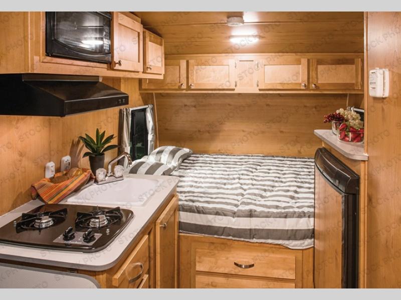 This Retro travel trailer is ideal for a couple or a smaller family of three. You can camp comfortably in this model, and you will be impressed with how easy it is to get up and go. There is plenty of space for eating, relaxing, or sleeping between the booth dinette and queen bed. The wet bath utilizes this unit's space while still giving you plenty of room to move around inside it. Take a look at our features and options to add a little something to your trip!