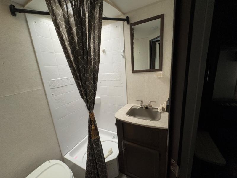This Launch Outfitter travel trailer features everything you need to take your camping up a notch! You can enjoy your meals comfortably sitting on the sofa that is located within the single slide because of the table in front that can hold your plate while you eat. You will also appreciate that the bathroom is located in the rear portion of the trailer which will provide extra privacy as you get refreshed each morning in the radius shower. You'll have plenty of room to store the ingredients of your favorite meals between the refrigerator and pantry, and when you're ready to hit the sack, you can jump into the queen-size bed in front and find plenty of room for your belongings in the nearby nightstands and wardrobe storage as well.