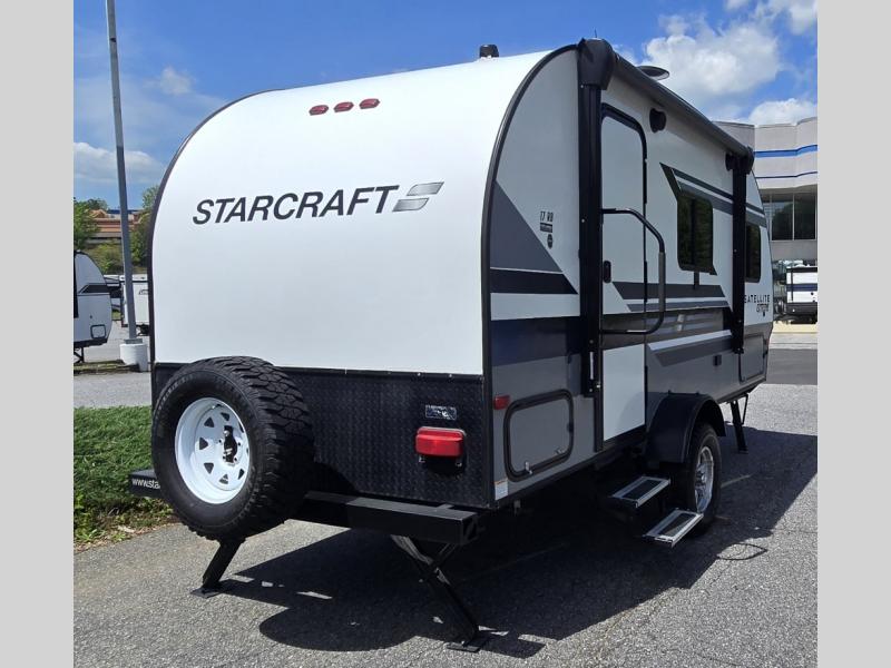 A rear bathroom, a single slide out, and sleeping space for three people are just a few of the features that you will find throughout this Satellite 17RB travel trailer by Starcraft. A handy feature you will also love is the outside shower, no more tracking mud throughout the trailer. At the front of this unit is a queen bed for you to enjoy a good night's rest and right next to it is the booth dinette for you to enjoy your meals at, play a card game, and also convert into an extra sleeping space too. When you're ready to wind down your nights, grab a beverage from the refrigerator and head outdoors to relax underneath the electric awning with LED lights!
