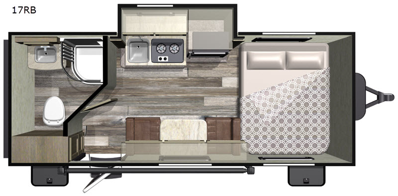 A rear bathroom, a single slide out, and sleeping space for three people are just a few of the features that you will find throughout this Satellite 17RB travel trailer by Starcraft. A handy feature you will also love is the outside shower, no more tracking mud throughout the trailer. At the front of this unit is a queen bed for you to enjoy a good night's rest and right next to it is the booth dinette for you to enjoy your meals at, play a card game, and also convert into an extra sleeping space too. When you're ready to wind down your nights, grab a beverage from the refrigerator and head outdoors to relax underneath the electric awning with LED lights!