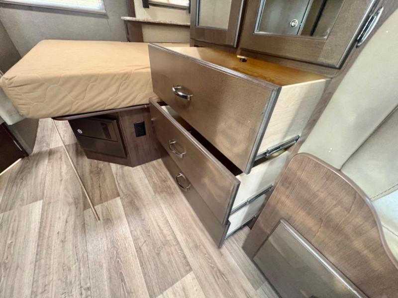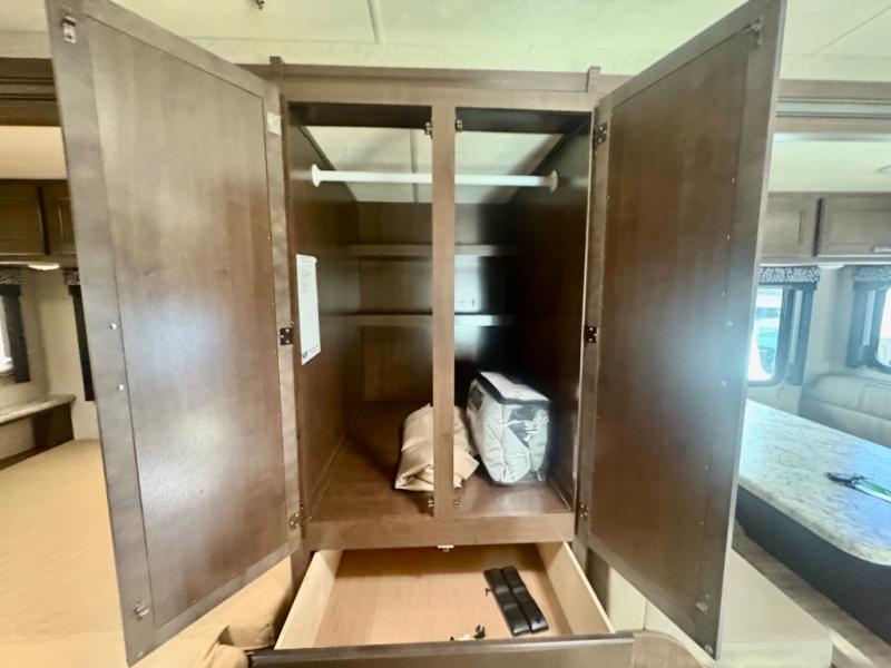 The slide out along the roadside features a 76" Dream Dinette where you can enjoy your meals. In the evening, you can easily convert this dinette into additional sleeping space. Just past the dinette there are two closets for your hang up clothes.