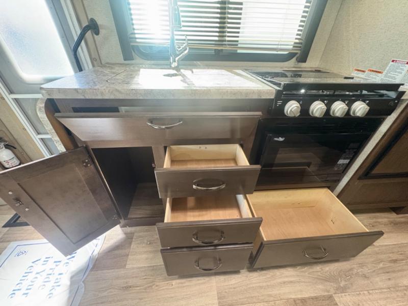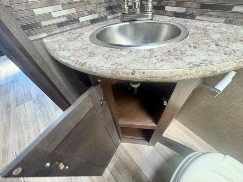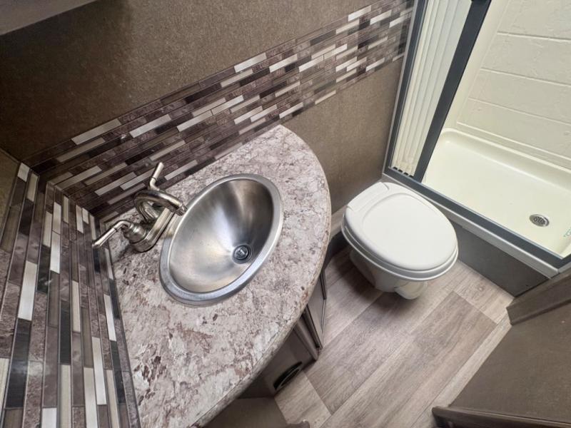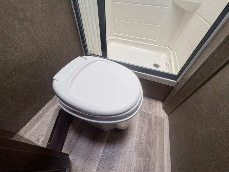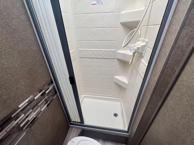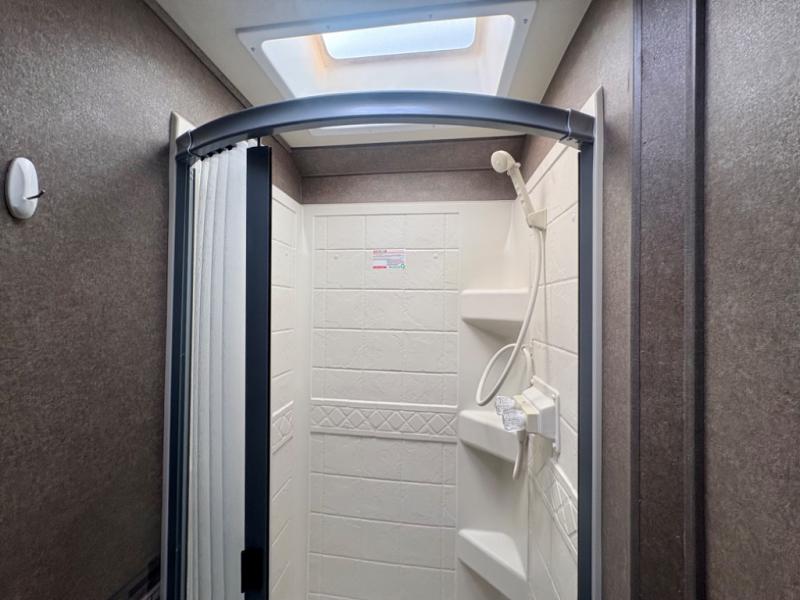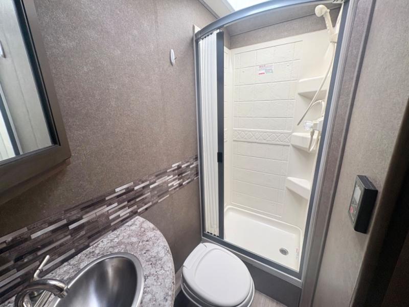 Easily get ready for your day with the convenient rear bathroom. Here you will find a 24"x32" shower, a toilet, and a sink with a medicine cabinet, plus more!