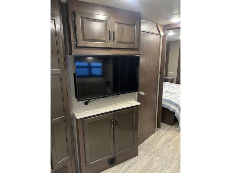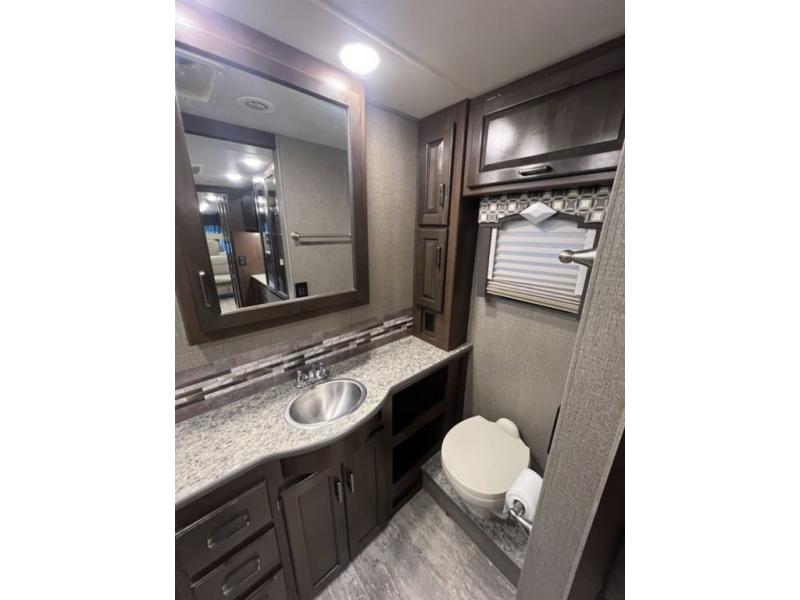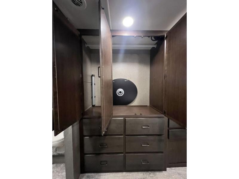 Have you been dreaming about traveling to see new places on your "bucket list"? No more dreaming, this Hurricane provides convenience, comfort and six seatbelts as well as sleeping space for six. You can invite the grandkids or your RV friends to enjoy all the amenities where ever your go. Just imagine traveling down the road in captain's chairs that also swivel to provide more living room seating. The L-shaped expanding sofa bed allows you to view the TV and visit with the cook in the full kitchen. You can stock up on cold items and dry goods thanks to the residential refrigerator and the pantry. You even have the option to add a stackable washer and dryer to keep everything clean. The rear full bathroom can be all yours while your guests use the half bath. Come see how your traveling lifestyle will work perfectly in this coach.