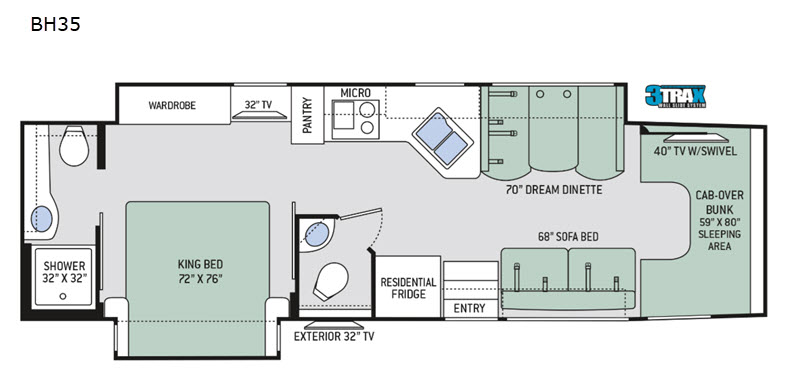 | TV Info | Cab 40" TV, BR 32" TV, Exterior 32" TV |