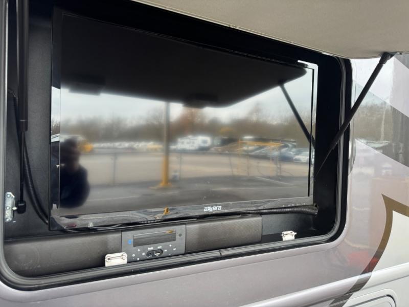 Don't settle for simple and boring camping trips when you can have magnificent experiences every single time you camp out in this Magnitude Super C diesel motorhome! From the 32" exterior TV and residential refrigerator, to the full and half bathroom and king-size bed, Thor Motor Coach has spared no expense in creating a luxurious and comfortable coach that will meet your every need. You will also be thoroughly impressed by the amount of interior living space that comes with the full-wall slide!