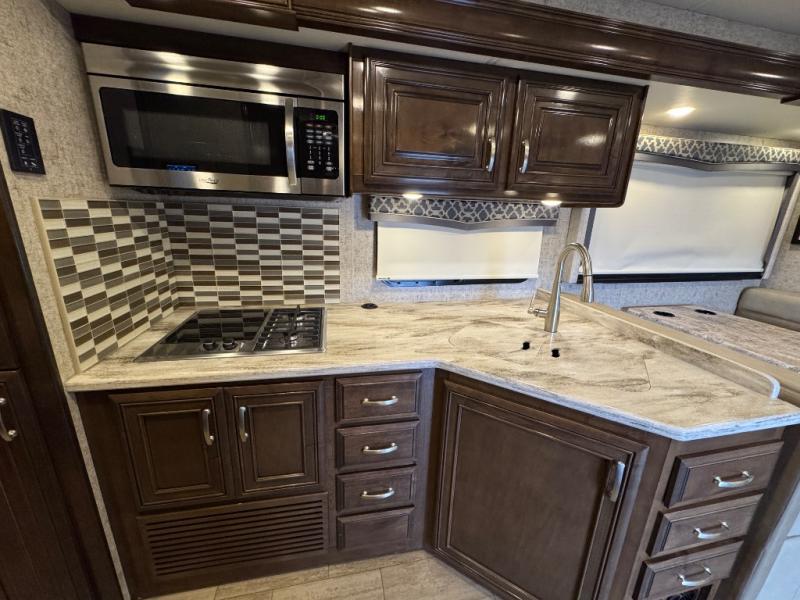 With the long list of safety features that come standard in every Magnitude Super C diesel motorhome by Thor Motor Coach, there is nothing that will hold you back from experiencing nature at its finest, and with a Ford F-550 chassis, PowerStroke 6.7L diesel engine, and 750 LB/FT of torque, even the toughest expeditions don't stand a chance against this robust and stylish power house. You also won't believe how accommodating the Magnitude's cockpit is with its Mobileye collision and lane departure warning system, side view camera system, and voice recognition entertainment system. To add that extra touch of luxury, Thor Motor Coach has included a tankless water heater in every Magnitude so that you can live just as comfortably on the road as you do in your own home.