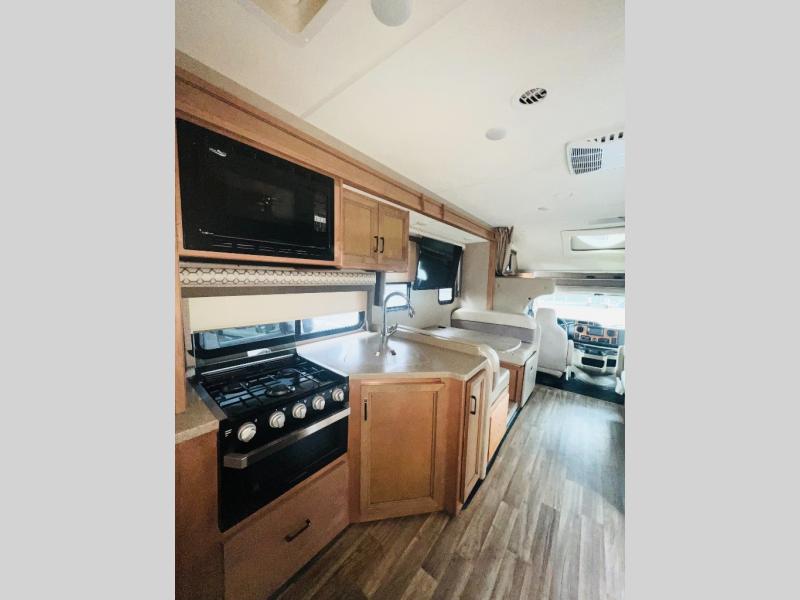 This Class C motorhome is the place to be! With two slide-outs; one in the living area and one in the rear bedroom, it really opens up the floorplan. In this unit, you have sleeping space for up to seven individuals.