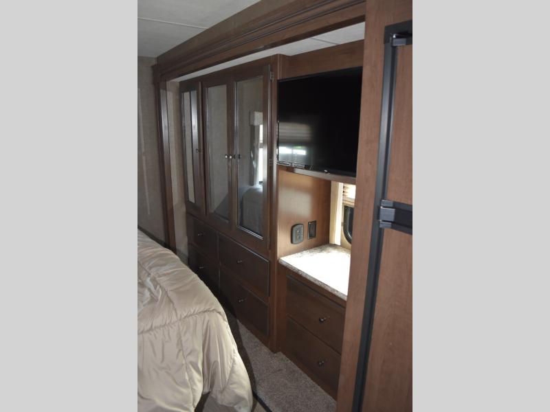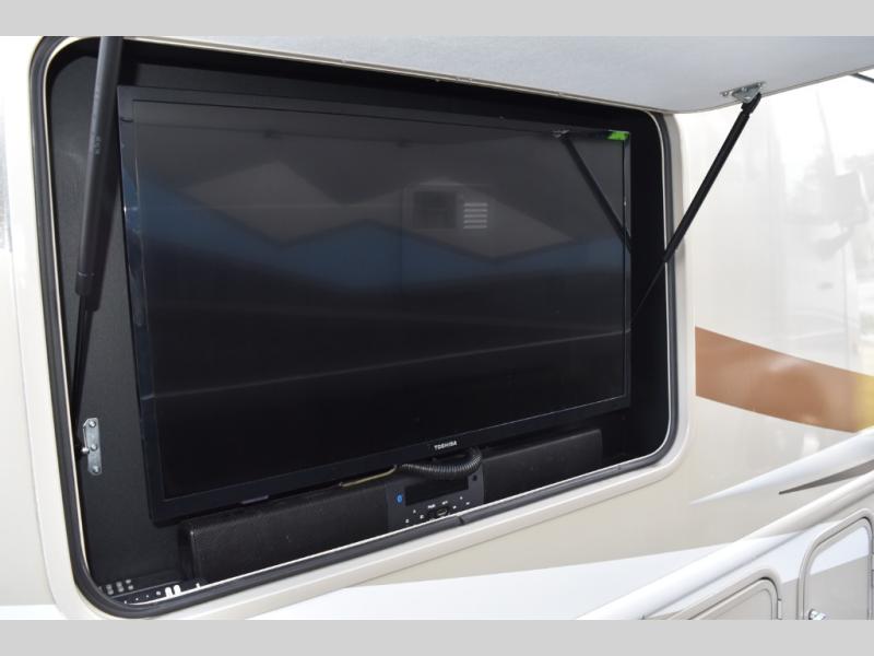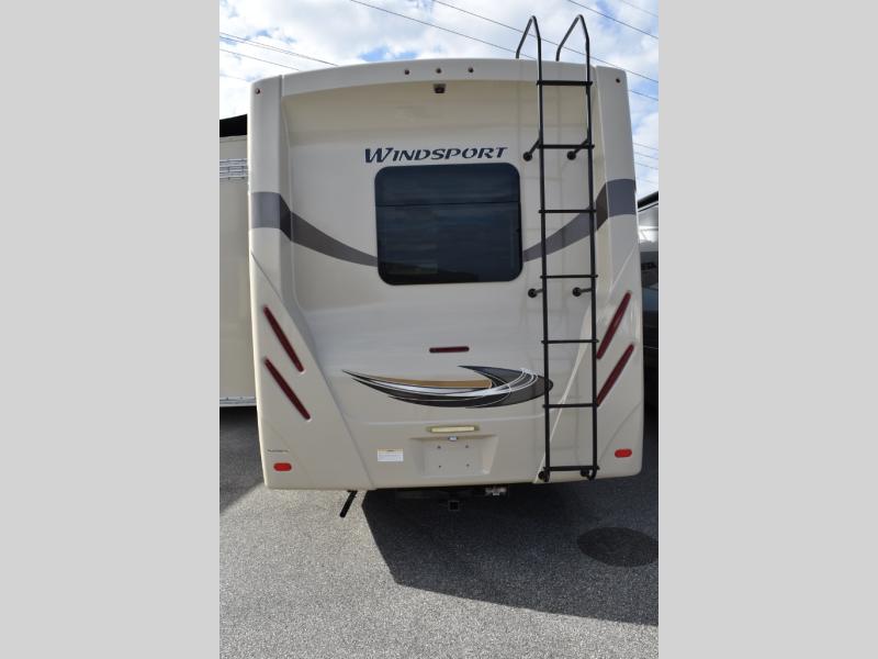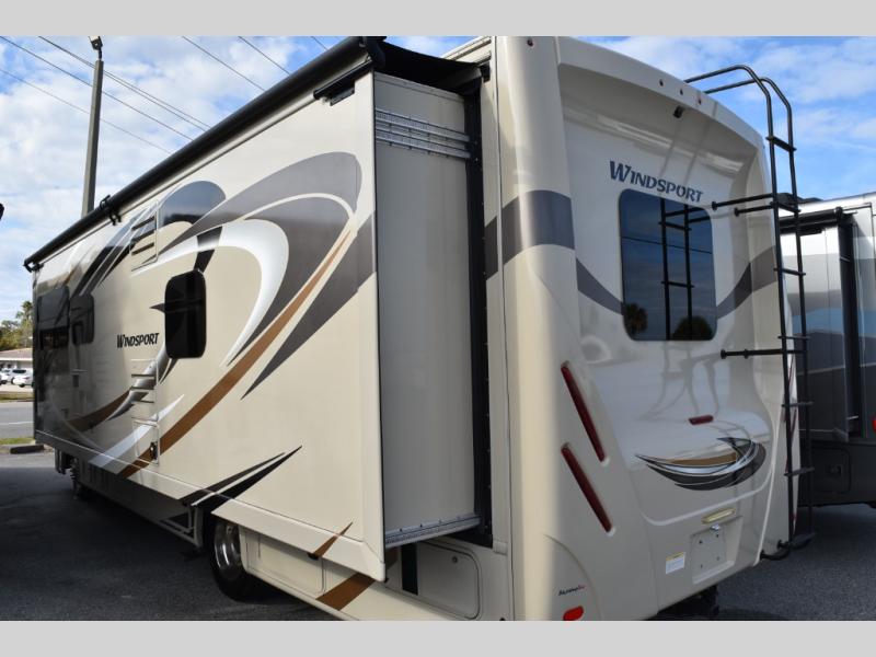 Have you been daydreaming about traveling the countryside with your spouse? Are you looking for additional sleeping space on occasion? This Windsport class A gasoline coach will have you sitting by your number one person in comfort and style. This unit features captain's chairs and a coffee table to enjoy your morning cup of Joe, a sofa bed for overnight guests, and a Dream Dinette all together providing enough seating for eight people to visit in the kitchen and living area. The king bed in the rear bedroom allows you to sleep in comfort anywhere you decide to stay. The chef will appreciate all the kitchen amenities inside when making meals including solid surface countertops, and outside when making dinner using the exterior kitchen. Everyone will appreciate the centrally located full bathroom for convenience. This unit includes an exterior 32" TV, and If you prefer to watch television when inside, you will find a 40" and 32" TV. Start traveling the way you like, in comfort and style.