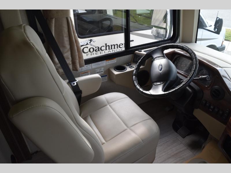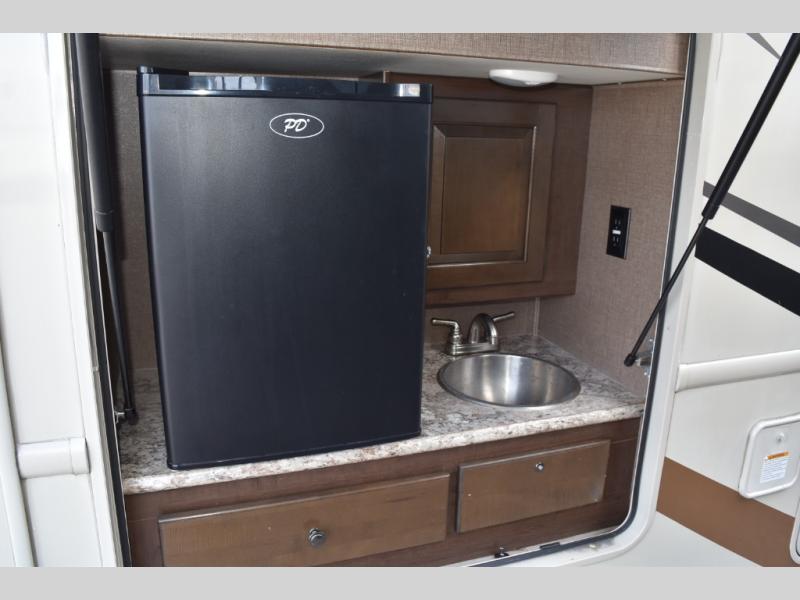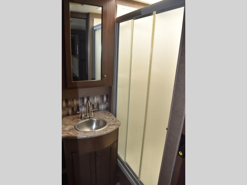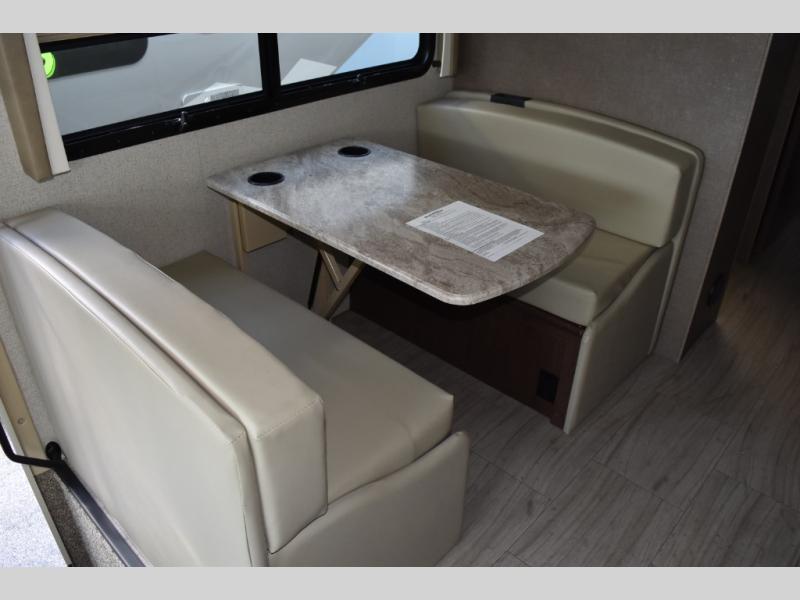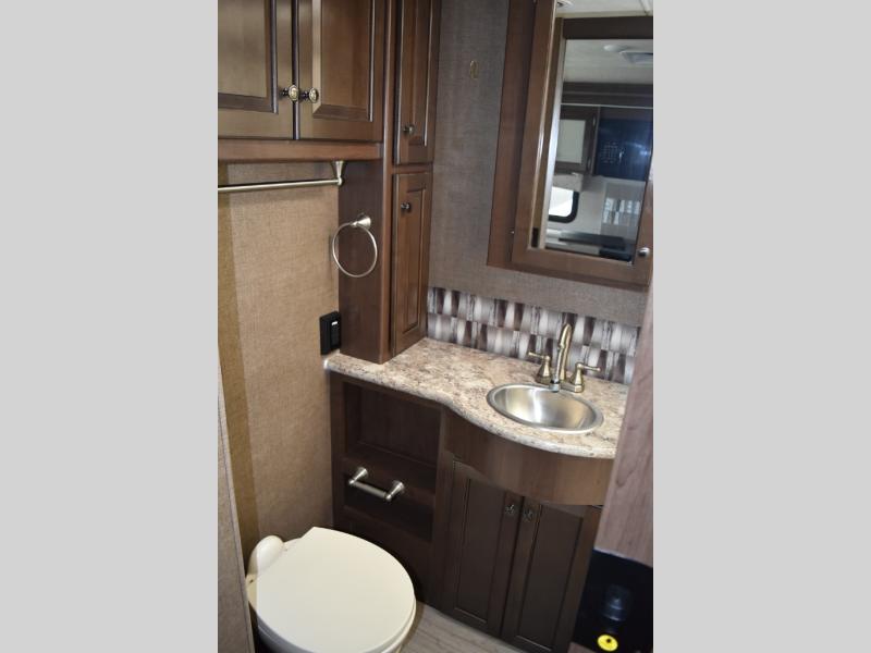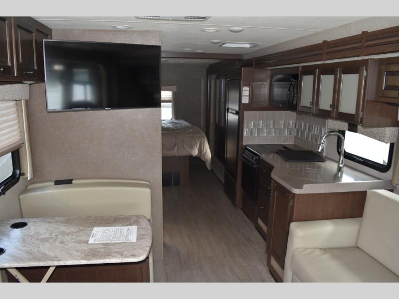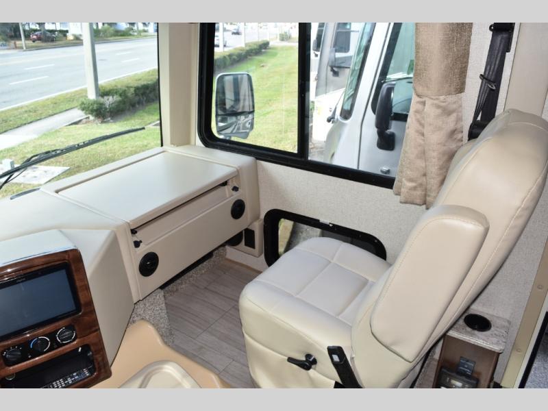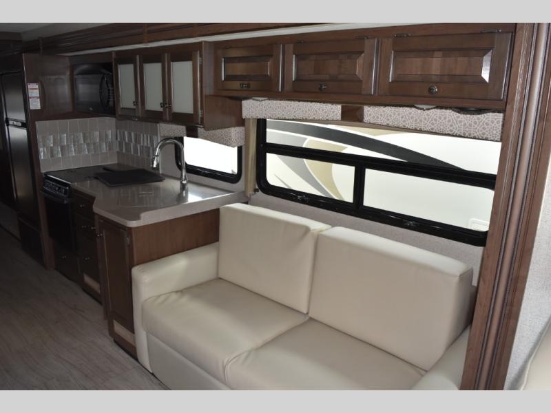 You will find there is much to love about the Windsport class A gas coaches, whether you are out for a long road trip across the country, or a weekend reunion with family. All Windsport models feature Leatherette furniture, solid surface kitchen countertops, and raised panel upper cabinet doors with nickel finish hardware and glass inserts on select doors. With the swivel and reclining captain's chairs featured in these coaches, you can easily bring them into the conversation area in the living space once parked. Each unit includes a dash workstation with 110-volt and 12-volt outlets at the passenger side for those who need to take work with them on the road, or for those who just enjoy surfing the internet. On the outside, enjoy Robocast storage compartments, an outdoor shower, and a legless lateral power awning with integrated LED lighting. Make any Windsport class A gas coach by Thor Motor Coach your new home-away-from-home today!